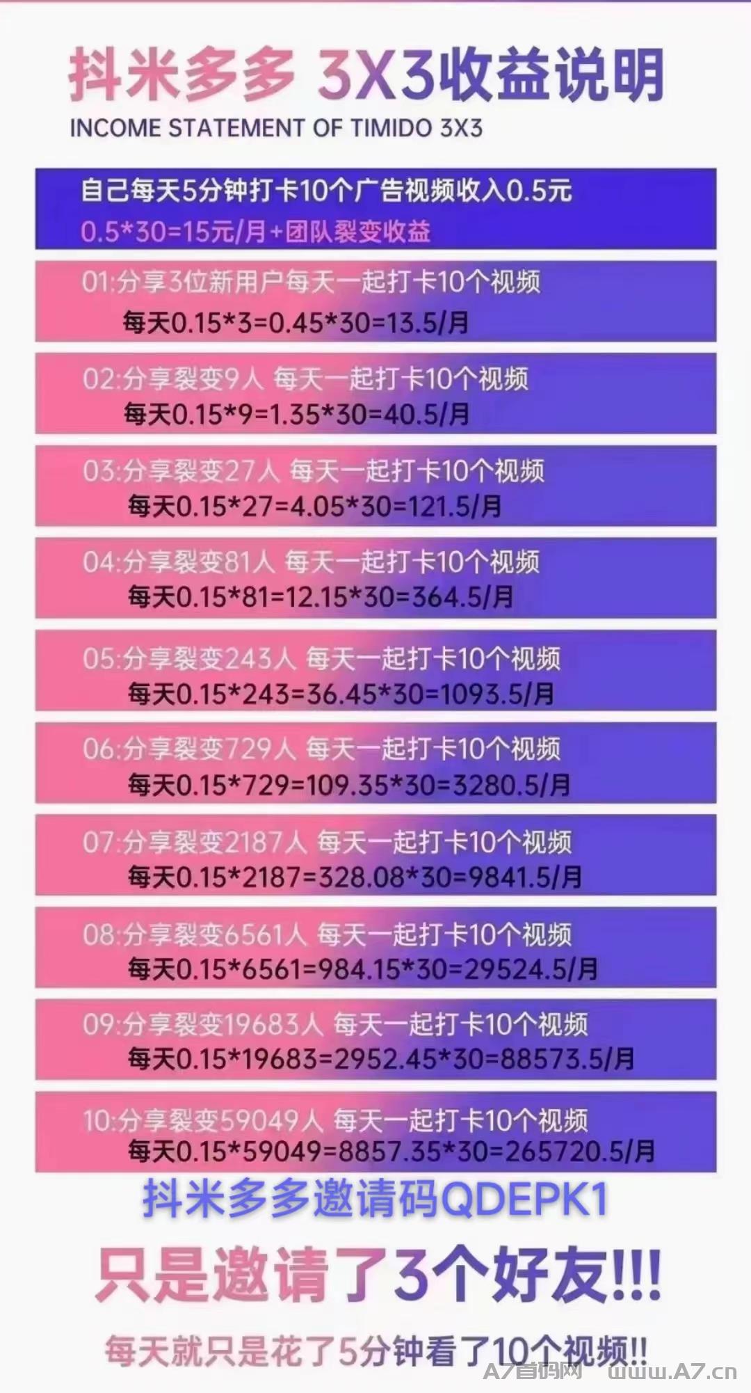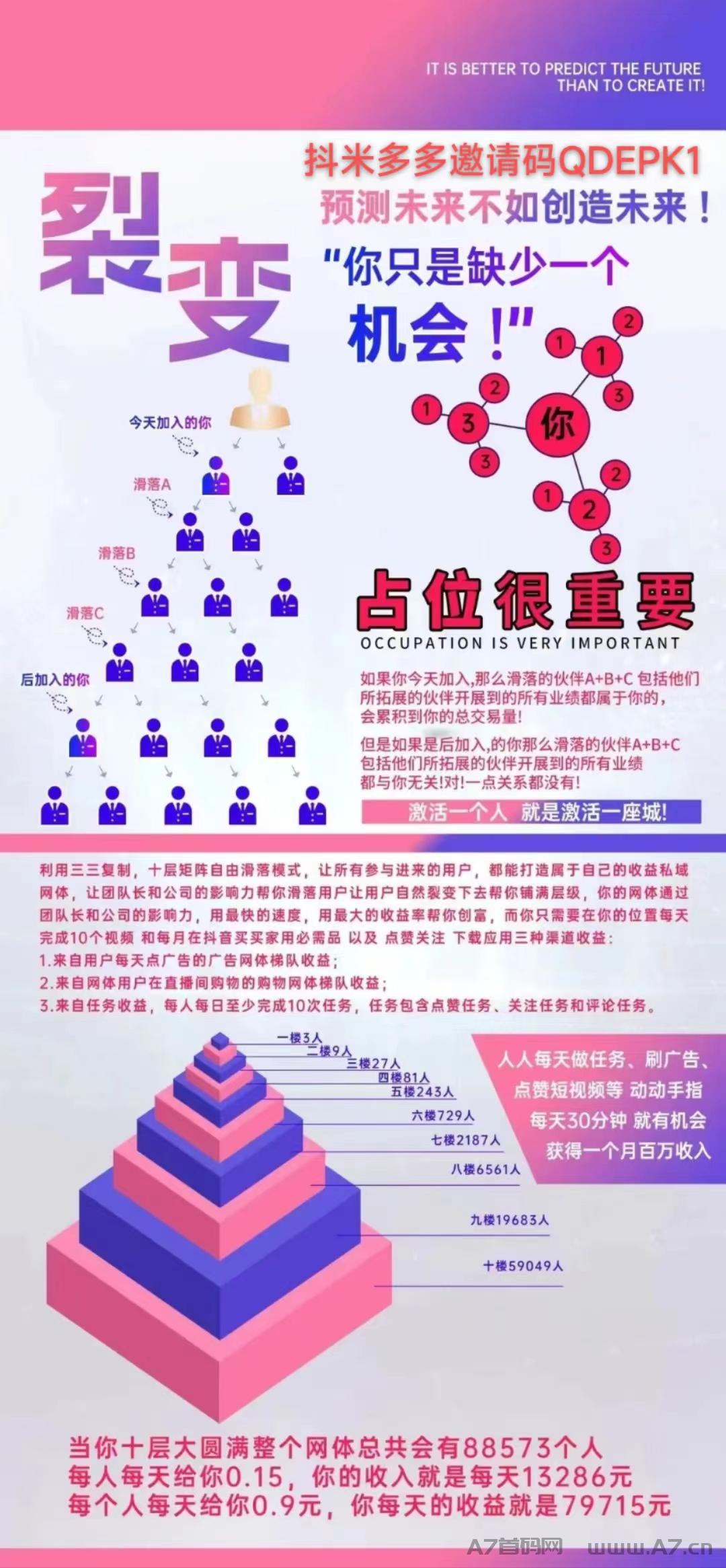 抖米多多简单粗暴,0项目投资,拿10层网体盈利连接各大团队长