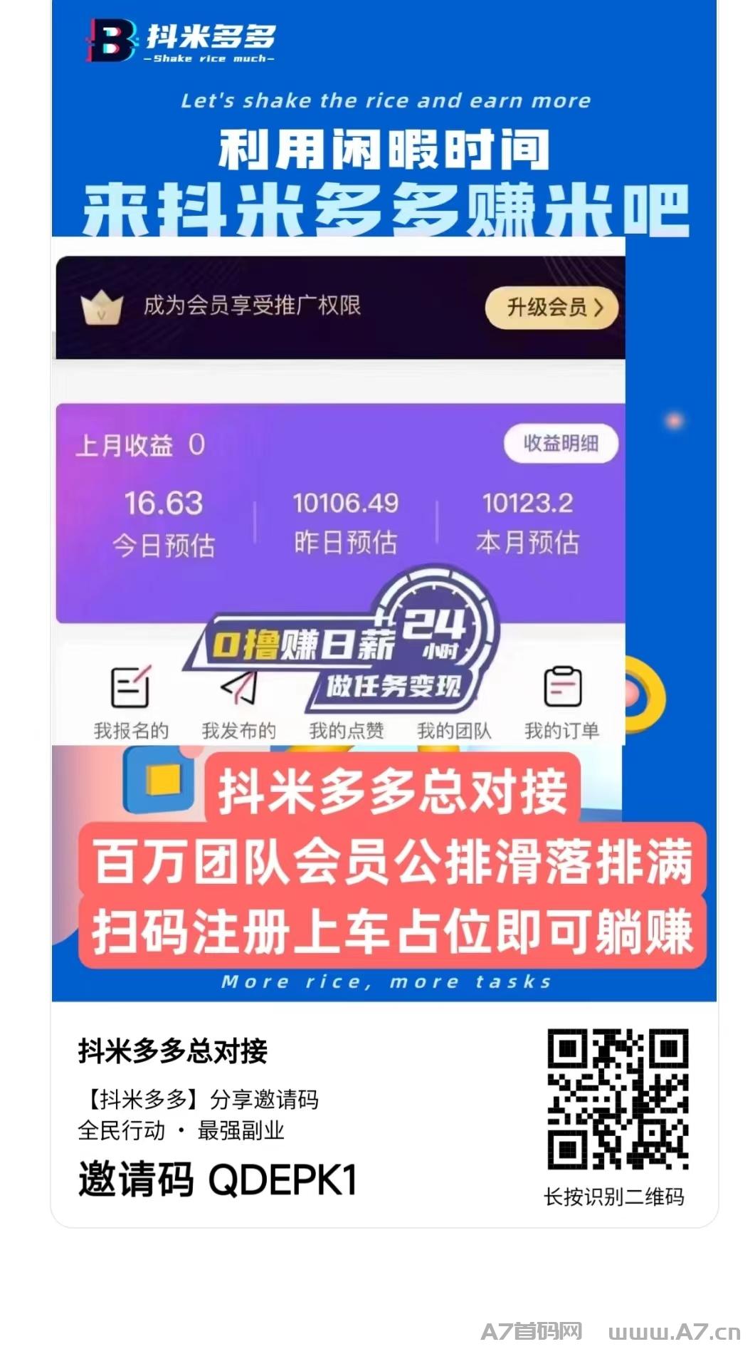 抖米多多不用投资、适合所有成年人、人人可以当天赚钱、不存在任何亏损可能、想做就做想赚就赚、自己做或推广均可赚钱的平台