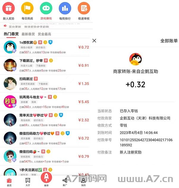 正文 企鹅互助,注册送0.3秒到 168首码网 V评论者 /2023-04-05 08:47:56/2.27 K阅读 0405 企鹅互助任务平台,运营1年多的老平台,现在官方做了个全面更新,新人注册登录并绑定微信秒推1个h包,一般都是0.3-0.7元,直推首次提现奖1元,第二次提现奖1.8元,连续奖励6次共15元,任务永久分成15%,1元起提。VX:dd577686768任务多种类全,注册秒推0.3-0.7元的h包。直推首次提现奖1元,第二次提现奖1.8元,连续奖励6次共15元,任务永久分成15%,每邀请1人绑定微信,他得0.3-0.7元,你得最高19.9元的h包。