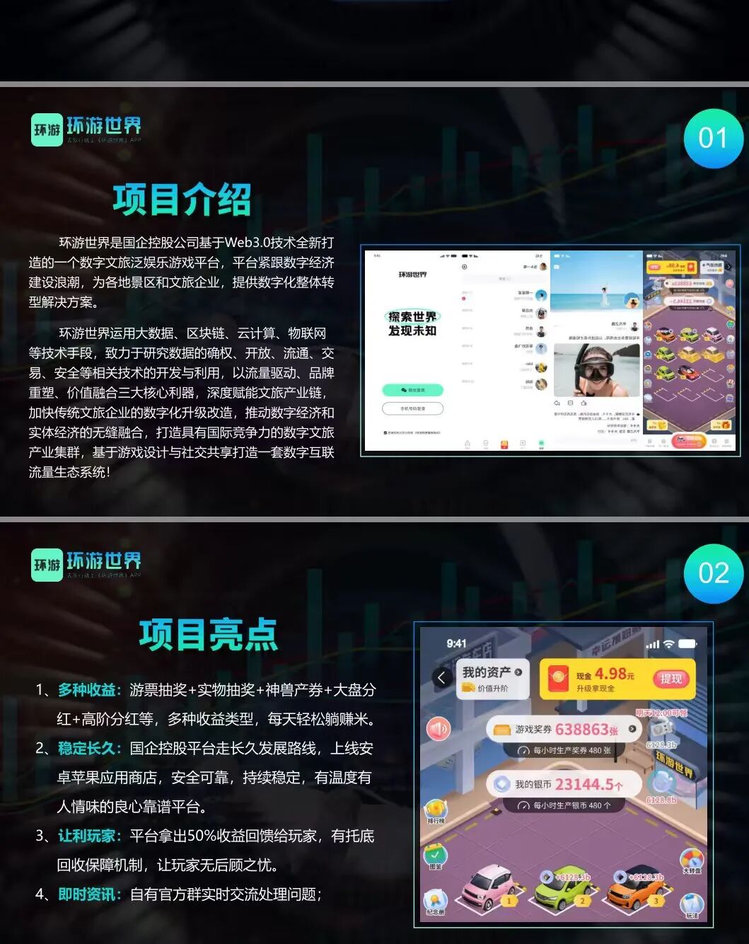 环游世界是**控股公司基于Web3.0技术全新打造的一个数字文旅泛娱乐游戏平台,平台紧跟数字经济建设浪潮,为各地景区和文旅企业,提供数字整体转解决方案。