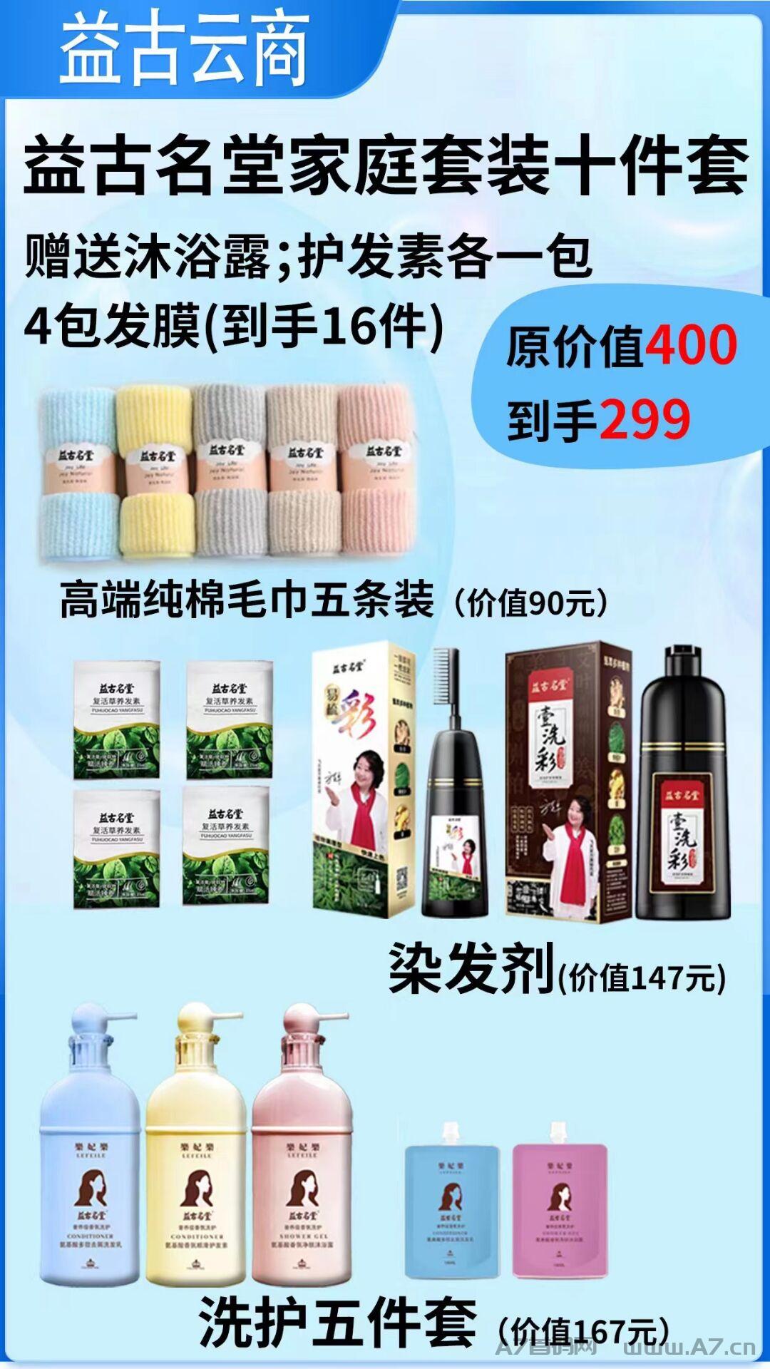 《益古云商》 家庭洗护套装升级版!创新模式,产品立竿见影,独立品牌,专利产品,加入就送500人团队,每人消费就有团队,解决历史无团队问题。