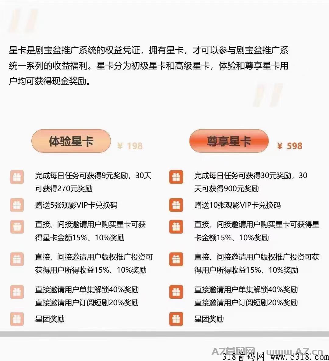 星卡达人:初级达人198,每天奖励9,高级达人598每天奖励30。