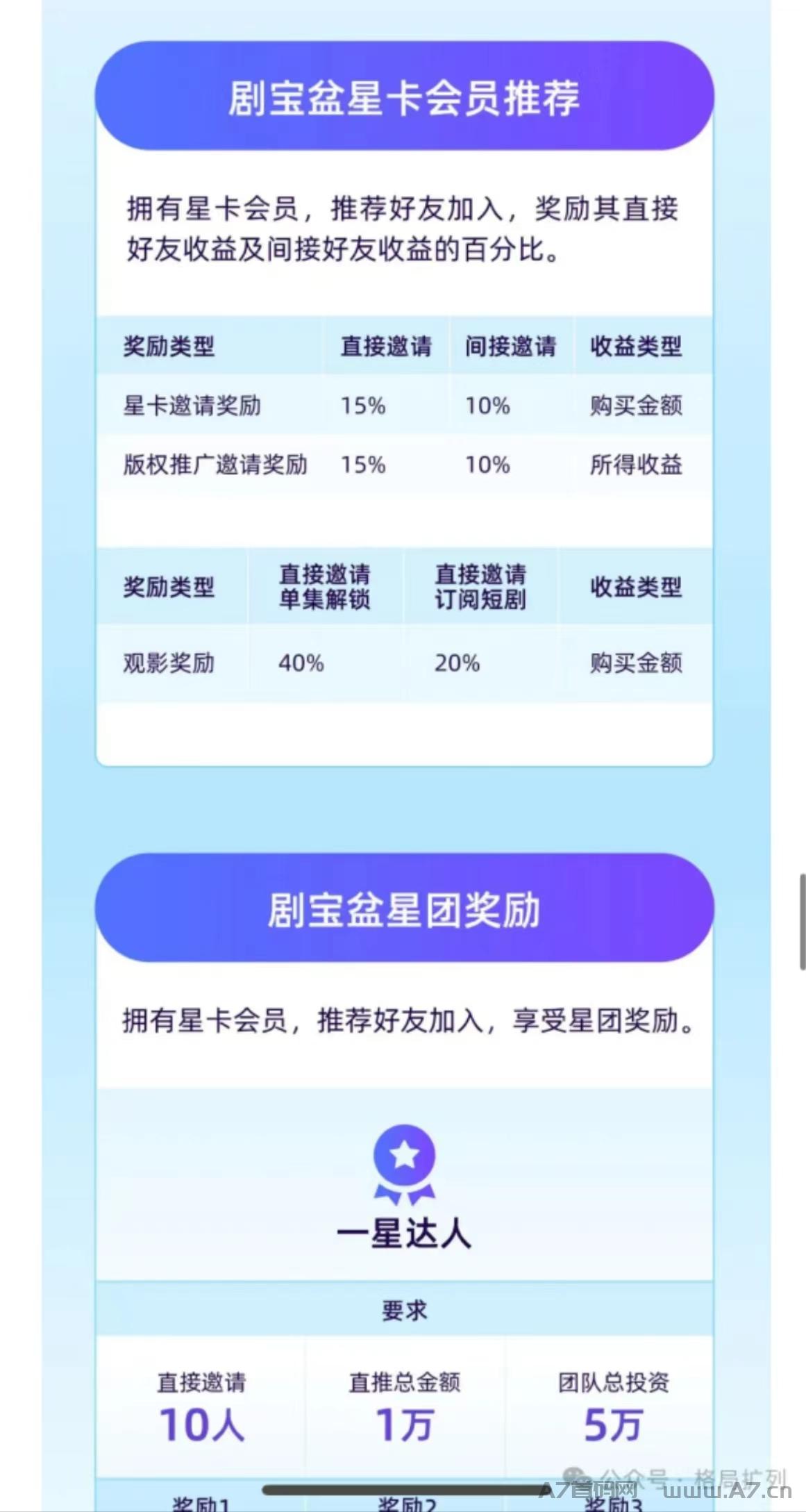 星团权益:一星达人3%/二星达人7%/三星达人10%(包括团队星卡与版权收益)