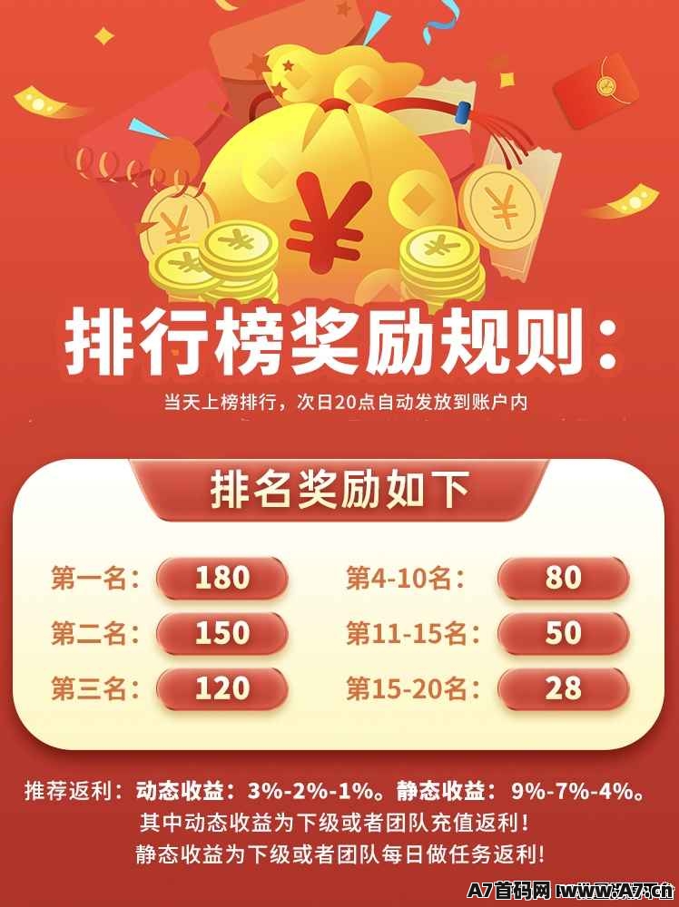 "登上佣金排行榜,尽享丰厚奖励!每日努力做任务、推广团队,赢取最高180元奖金!**收益高达3%