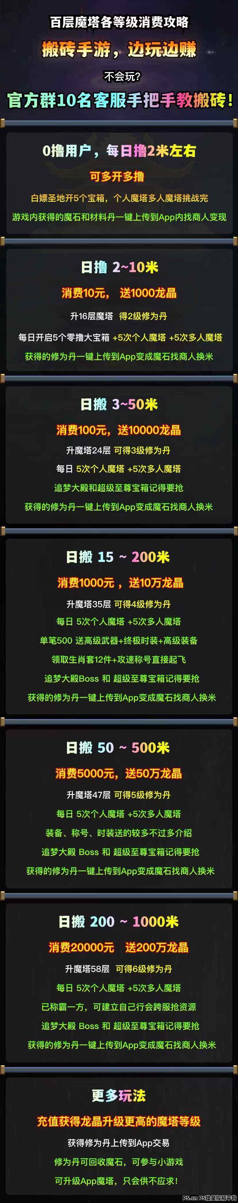 正文 百层魔塔,各等级消费攻略,边玩边赚 双笙000592 V作者 /2024-07-29 10:38:30/1.06 K阅读 0729 百层魔塔一款零撸爬塔、注册即可撸魔石的搬砖小游戏!!推广奖励高,团长后台提米日结!!一直专注于做消耗,每日消耗远远大于产出,让泡沫不存在,玩家玩的快乐,玩的安心,赚的放心!!内测已一个月材料一石难求,市场稳定!!官群带玩客服手把手教学,不会玩也没关系!!官方带玩QQ群:708700488官方对接QQ:3143957493