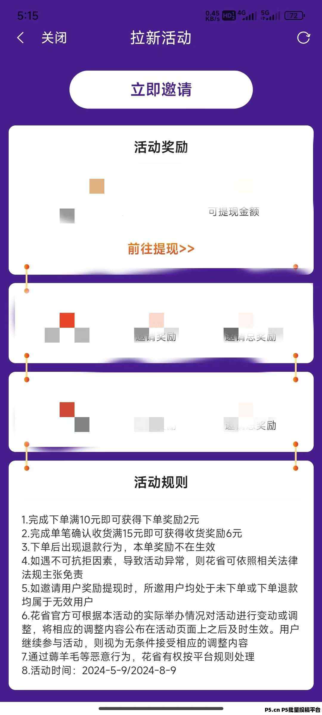 三、他的拉新奖励最高8元