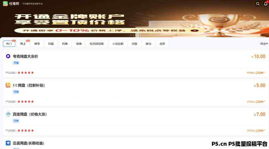 任推帮精心挑选的网盘推广项目,堪称线上掘金的优选方案,尤其适合热衷网络冲浪、资源搜集的你。通过巧妙分享网盘宝藏,即可轻松变现兴趣与热情。