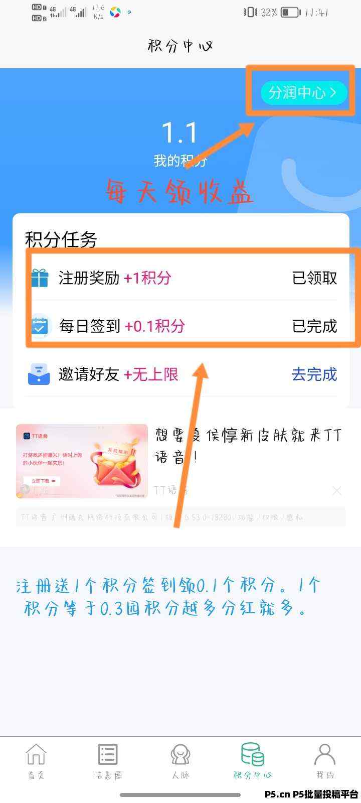 准确的能送我一个积分0.3以上,因为后续都会涨。所以早注册早赚。目前一个积分**0.31后续会慢慢变多。