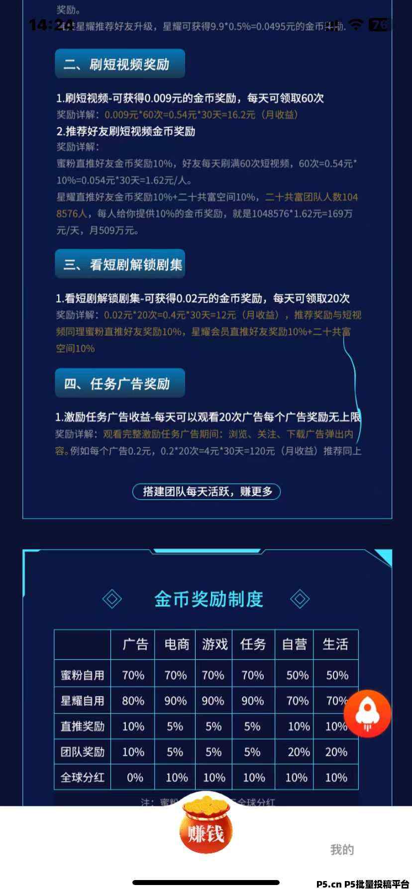 一次推广可带来多重收益,用户通过该平台,看广告能赚钱,看视频能赚钱,看短剧能赚钱,购物能赚钱,玩游戏能赚钱,做任务能赚钱,点外卖能赚钱,寄快递能赚钱,充话费能赚钱,抖音团购也能赚钱。如此多元化的渠道,为广大用户创造了可观的经济效益。