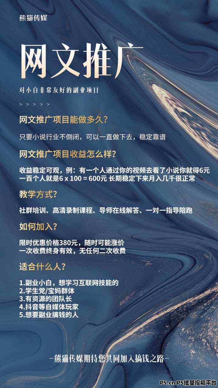 想必这也是大家最感兴趣的部分,熊猫商学院自2021年来一直致力于做小说推文项目,外宣政策也是稳定实行了三年的时间,下面是如何进行外宣的介绍: