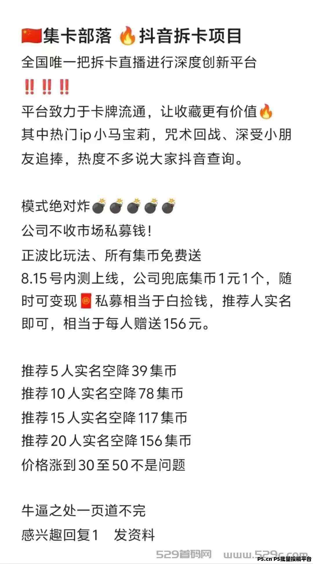 正文 集卡部落火爆上线,没上车的抓紧时间上车,可零撸可投资,全网最高扶持 星河000888 V作者 /2024-08-14 21:20:50/2.31 K阅读 0814 集卡部落(全网首创)直播拆卡集卡分洪卡包玩法可零撸,可投咨,上架各大商店每天做任务得5.3个1帀=2米起步!嗦粉玛已出,15号正式上线!嗦粉期间送空投156个,速度上车 详细资料加v:lechao2400
