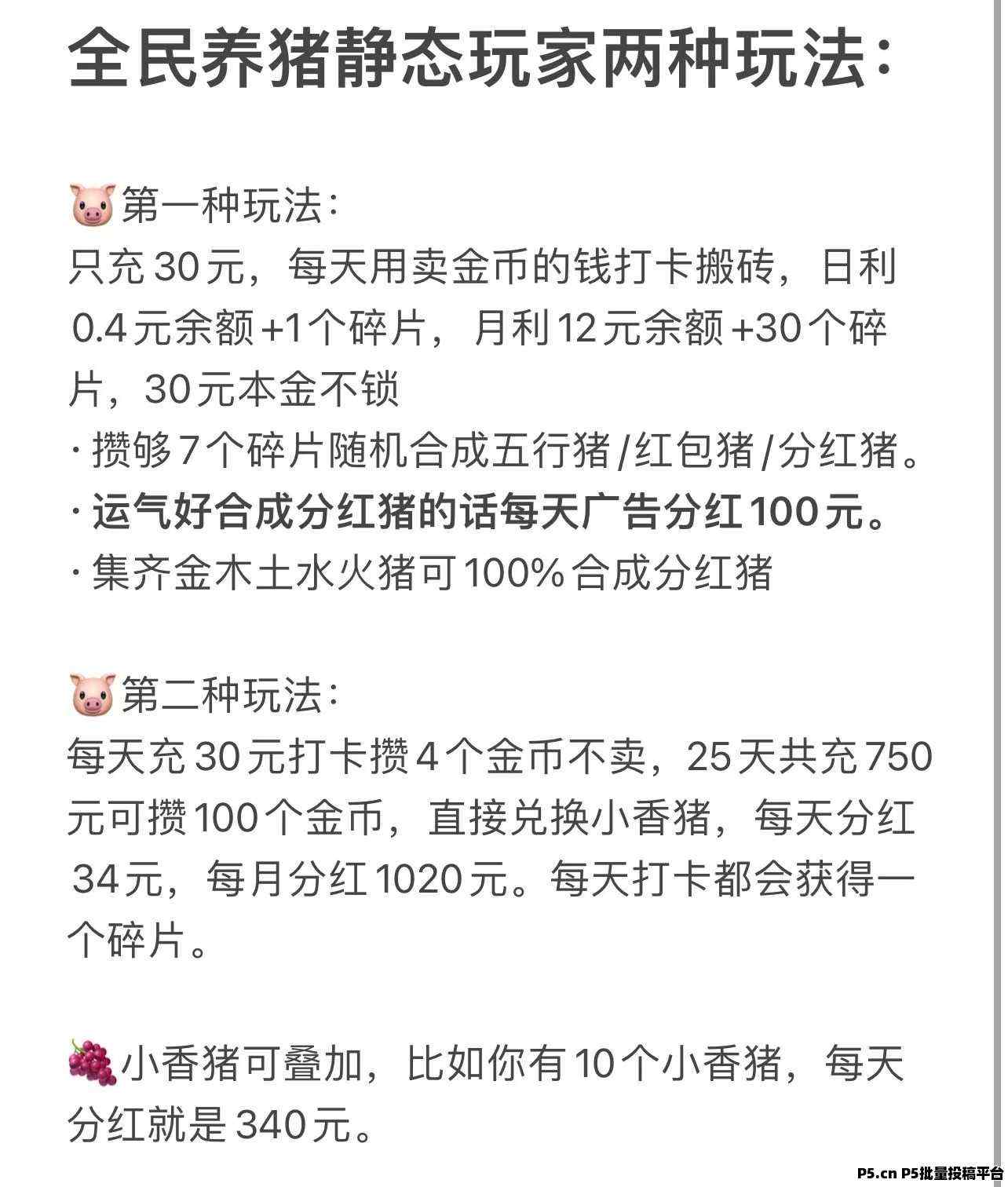 正文 全民养猪即将火爆上线,对接全网各大团队长,即将出码,今天你养猪明天猪养你,全新模式全新玩法 星河000888 V作者 /2024-08-29 22:46:22/1.3 K阅读 0829 全民养猪最新消息:需要内排拿首码的+vAPP进度目前进展顺利,预热和上线时间提前。26号开始正式全网预热,30号上线开放注/册,31号开放充/值。所有内排伙伴可直接用默认密码登录提取首码抢占市场!还没内排的伙伴抓紧
