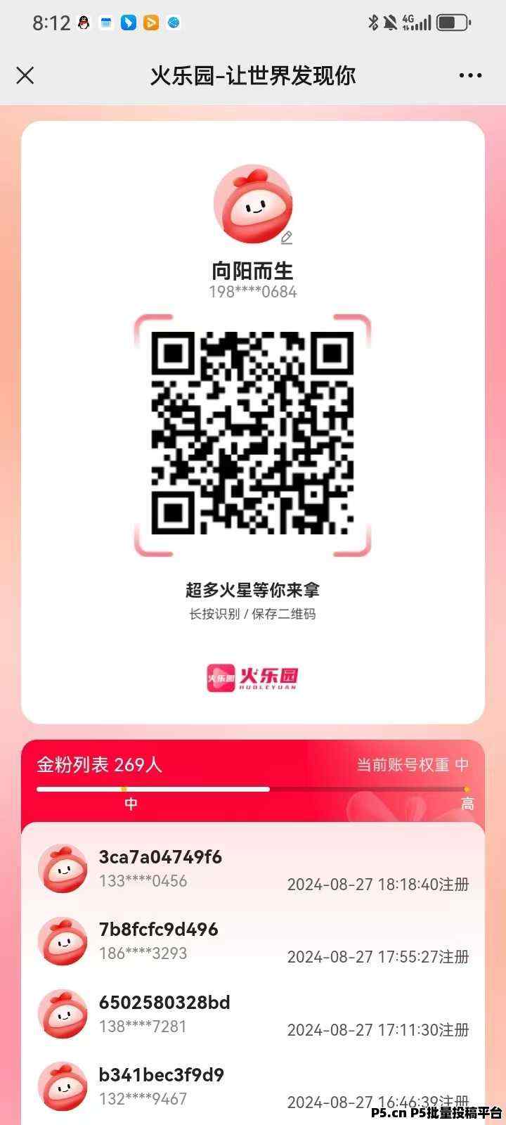 将生成的二维码转发出去,让别人扫描你的码注册,他们就会成为你的金粉。