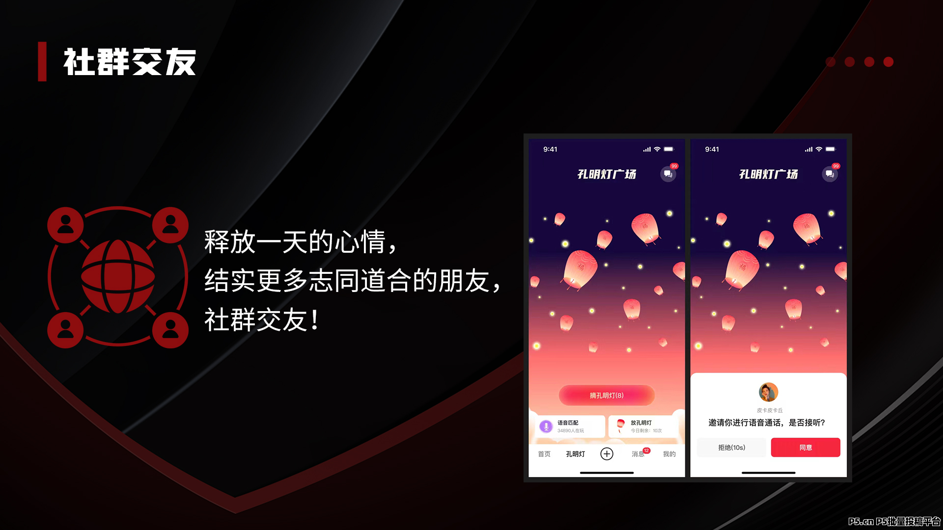 5、孔明灯交友,有语音聊天,同城匹配,有偿聊天。交友赚钱两不误。