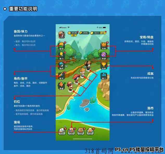 内置角色合成升级系统、鱼竿合成融合系统、鱼鉴系统、小游戏系统、道具交易系统!可玩性好。
