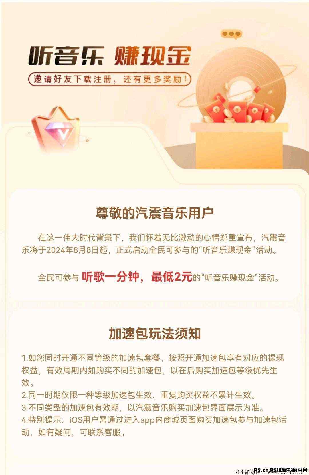 正文 汽震音乐,听歌赚钱 lzb1790050733000979 V作者 /2024-09-17 09:59:48/1.44 K阅读 0917 听歌一分钟,最低2元钱一个人赚钱,不如一群人赚钱,注册时记得填写邀请码(FVQTBUK4)哦开通那个0.88会员每天听一分钟歌领两元提现秒到