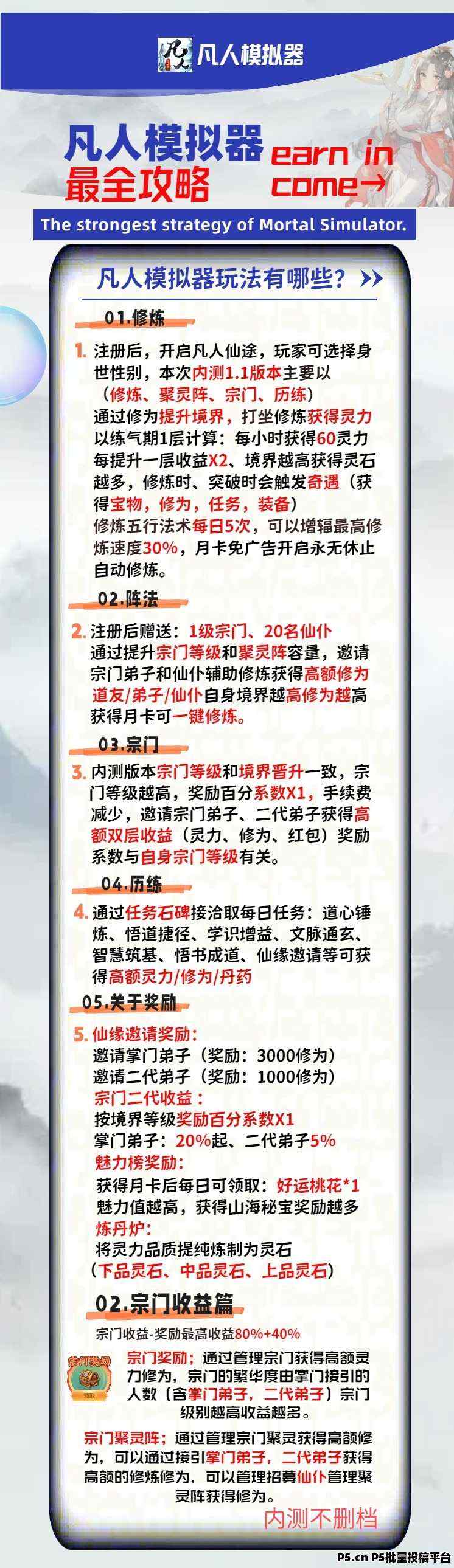 灵力,灵石,修为,材料都可以通过坊市与玩家易物,赠送,不同境界还有广告收入。灵力可凝集灵石兑换红包,交易装备,提升境界,平台兜底