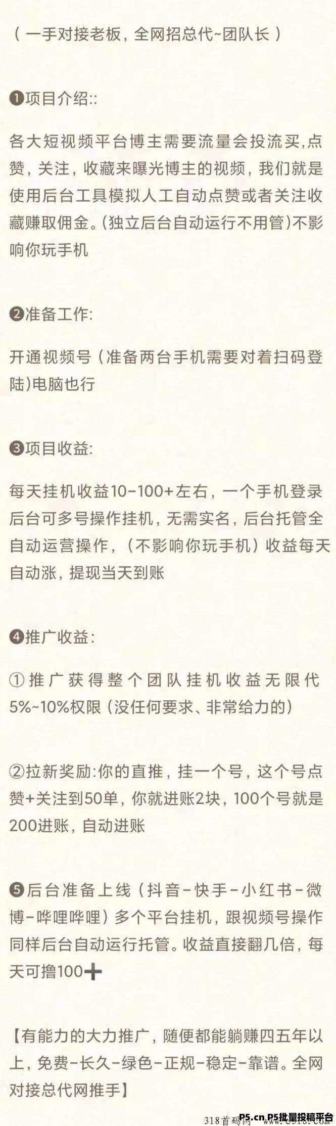 想要扩大收溢?加入我们的推广团队,我教你如何操作。此项目无限裂变,推鉴**成员,收溢丰厚。