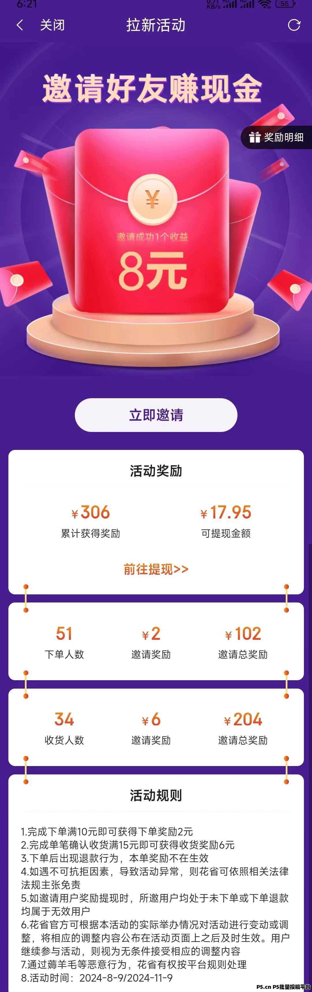 花省在培养团队上有一对一的导师带,如果你不会引流不会拉群,想开展花省不知道怎么做,这些都无需担心,晨曦导师会带你参加官方培训,培训都是干货,无需缴费,最重要的是执行力!如果执行力到位了,成功是迟早的事!{此处是彩蛋,原创者是晨曦导师,邀请码899999}所以一旦你想要开始利用花省赚钱,请不要犹豫,我是晨曦导师,将会一对一进行辅导,只要你认真做,无需担心做不好。最重要是不需要投入任何资金,0成本开展副业赚钱。