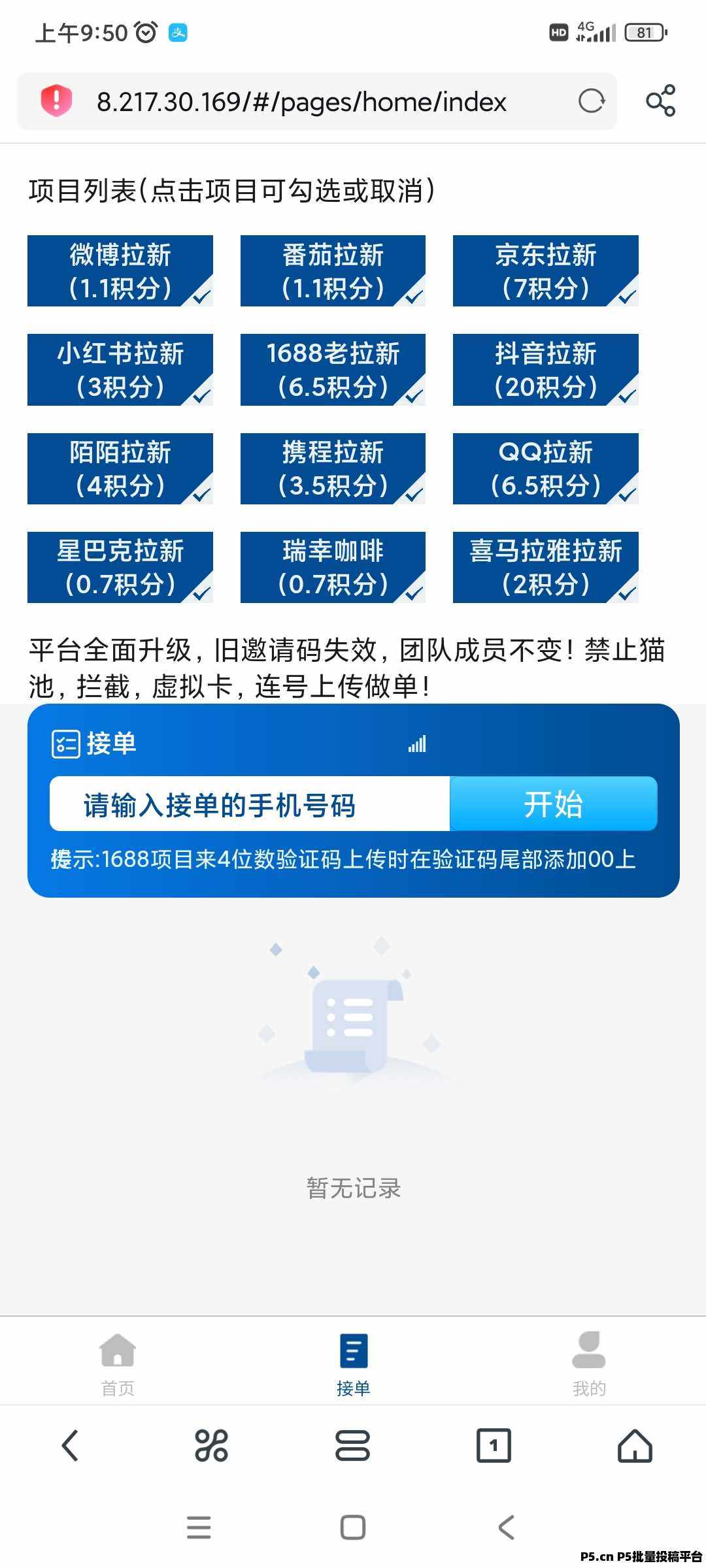 2、领取任务:用户可以根据自己的需求,在云顶接单平台上选择并领取各种类型的拉新任务。