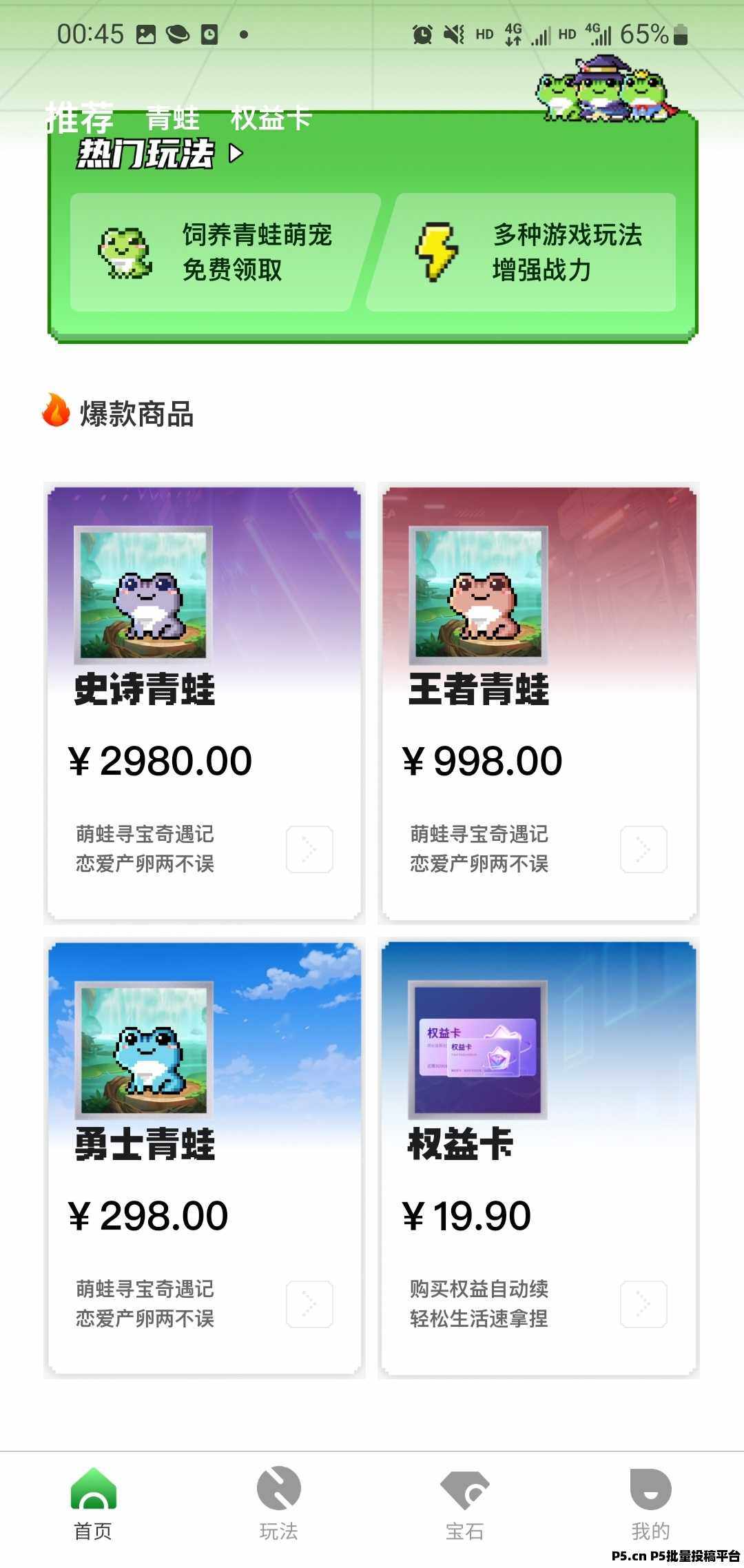 进入游戏后,简单几步就能领养你的流浪蛙:先登录,然后点击下方“玩法”,再选择“青蛙玩法”,最后点击“立即领取”。