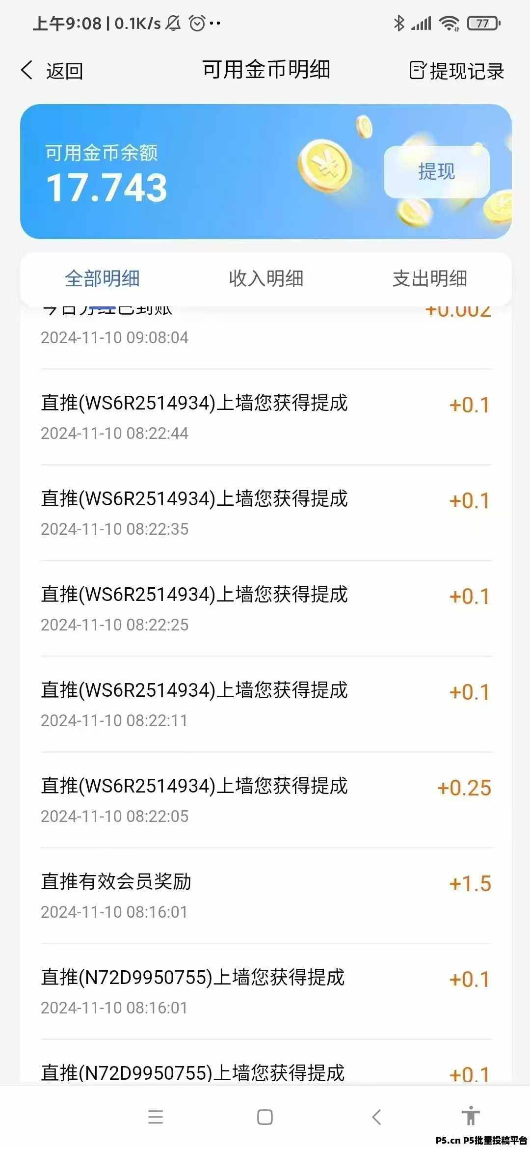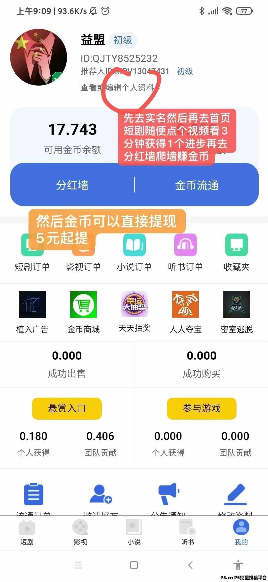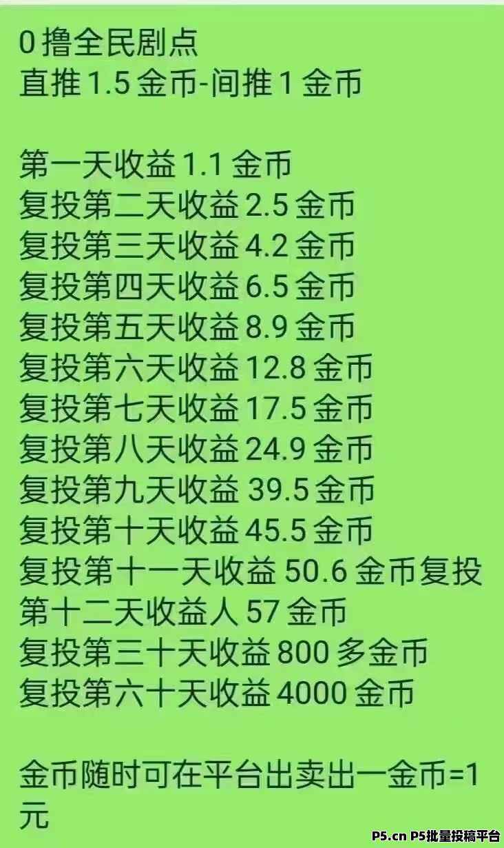 正文 全民剧点零撸用户的春天玩了即可变现 yimeng000148 V作者 /2024-11-12 21:13:25/1.35 K阅读 1112 首码全民剧点本年度最强变现零撸APP!零撸,零撸,短剧影视小说悬赏玩游戏利分宝模式(比如每天上墙积分0.1,明天就是0.2到账,24小时后去领取,非常暴利的零撸)第一天1 米左右第二天1.5 米左右第三天2米,也可以做悬赏任务,玩游戏任务获的米,然后上墙。直推获得1金币,间推获得1金币。1金币等于1元