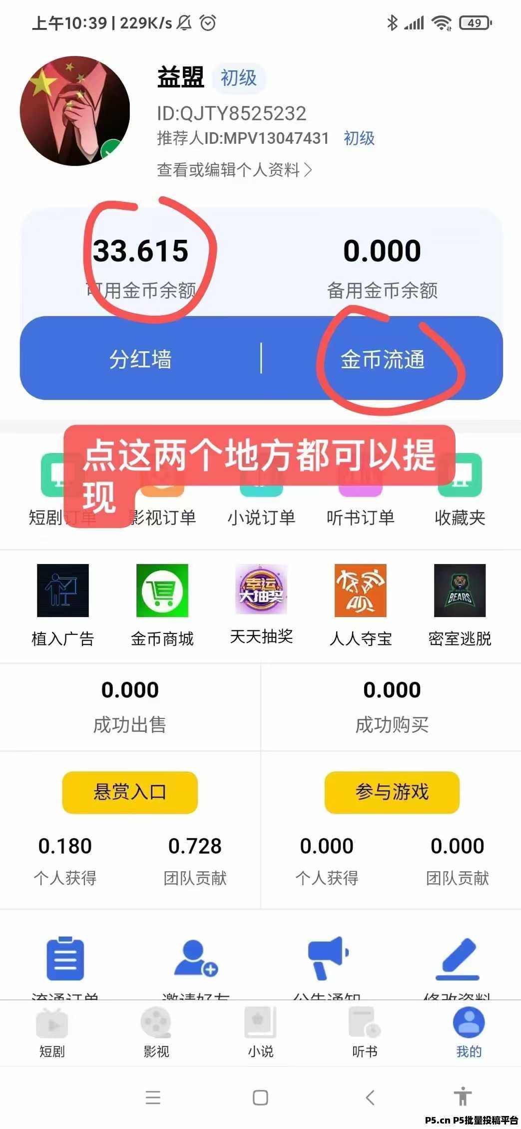 正文 全民剧点,有手就能赚钱随时可以变现 yimeng000148 V作者 /2024-11-13 21:04:08/2.08 K阅读 1113 全民剧点,有手就能赚钱随时可以变现首码- 全民剧点 本年度最强变现零撸APP!零撸,零撸,短剧影视小说悬赏玩游戏利分宝模式(比如每天上墙积分0.1,明天就是0.2到账,24小时后去领取,非常暴利的零撸)第一天1 米左右第二天1.5 米左右第三天2米,也可以做悬赏任务,玩游戏任务获的米,然后上墙。直推获得1金币,间推获得1金币。1金币等于1元