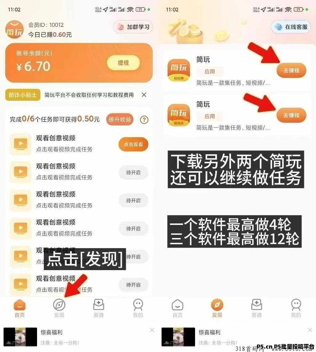 正文 简玩红包版,每天看广告,无需养机 yimeng000148 V作者 /2024-11-21 21:46:03/924阅读 1121 简玩新版本不养机看广,有老铁反馈高的一天都能撸20元以上一轮6个广告 每轮0.5-2米随机,每天看12轮 一天大概5-20提现支持微信支付宝基本都是秒到,邀请也有收益更多项目可加微信关注朋友圈第一时间发布:Mnyao1
