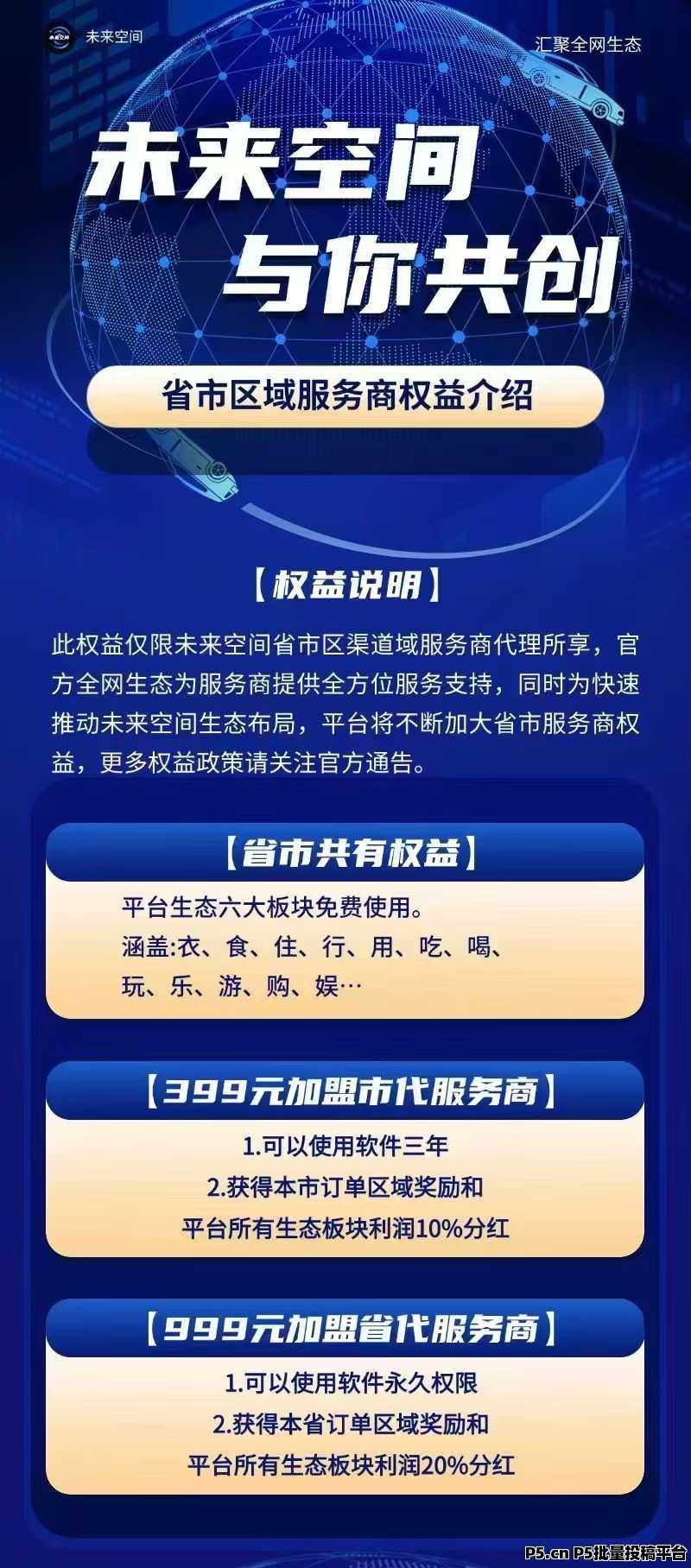 未来空间是一个涵盖生活中衣、食、住、行、用、吃喝玩乐,社交、游戏广告任务等共六大板块的**平台。