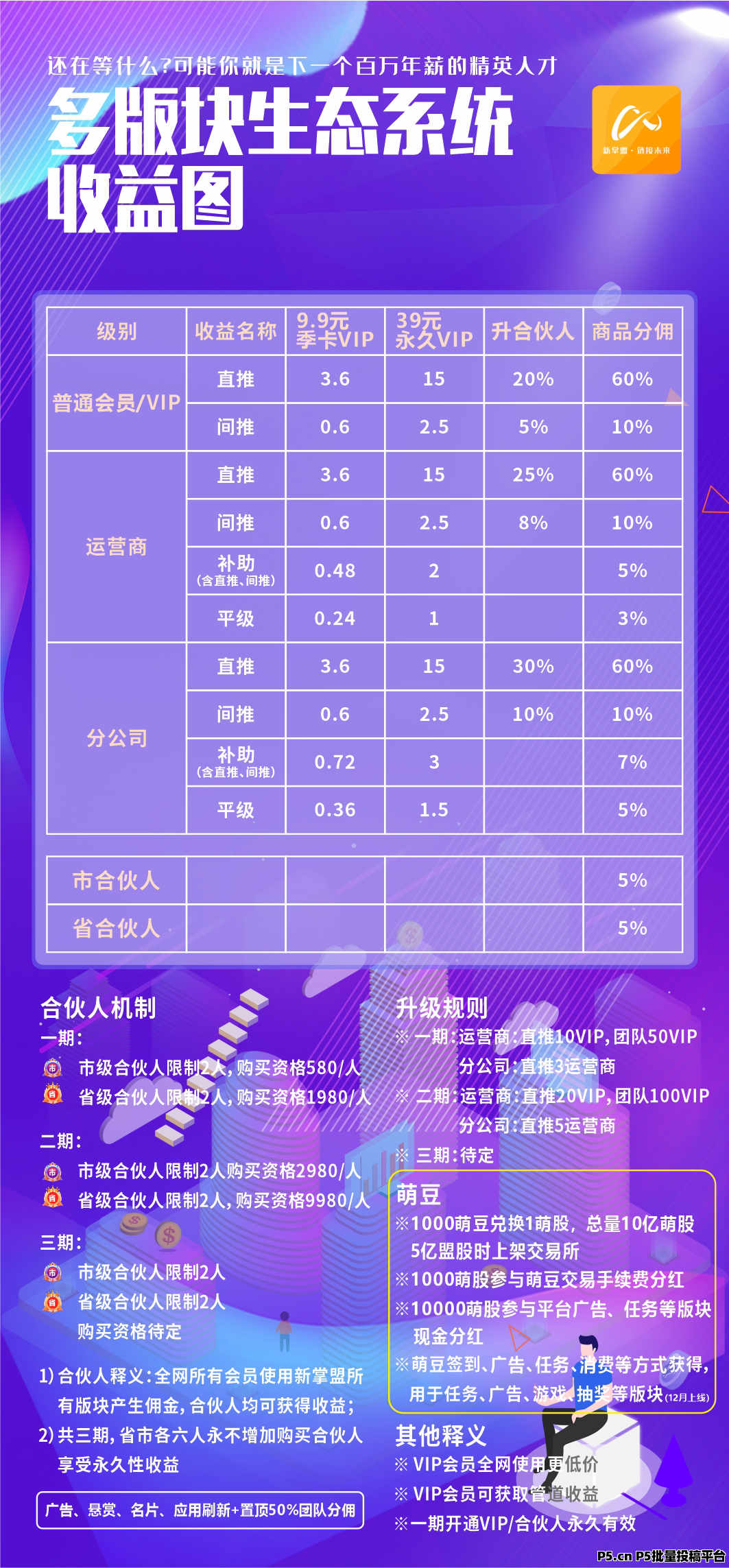 4.超值合伙人权益,开通即享领地用户佣金提成,无推广亦有收益。更有团队等级福利,佣金补助丰厚,让您轻松实现财富增长。