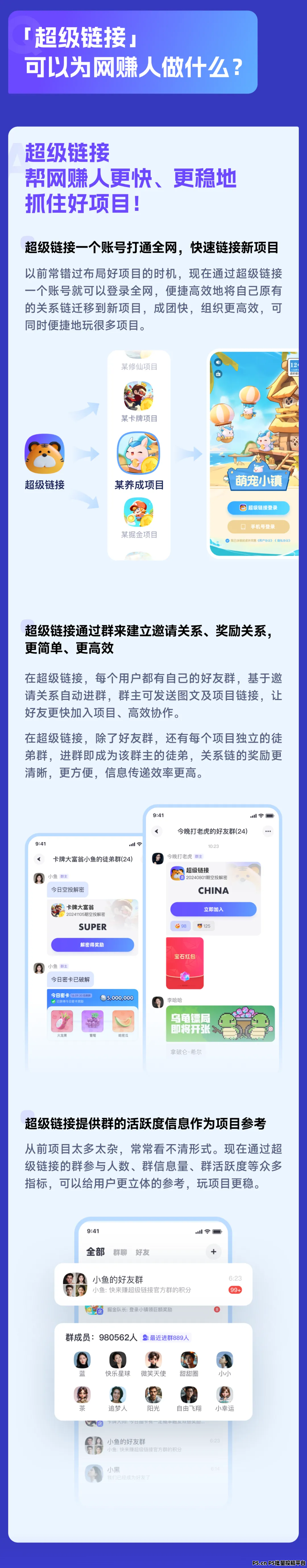 超级链接,蜂群旗下的新项目,一个连通所有潮玩项目的新**,货币互通,人脉互通,资源互通。未来也会有大量app接入进来,做第一批吃肉的人,抓紧先机,抓住时间,抓住机会展望未来。