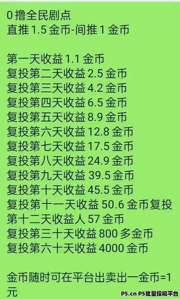 第四步,起初一元一个金币,目前已经涨到1.2元一个金币。想获得更多的金币,那么多推广拉新,就能更快拿到高阶梯的金币**。不推广拉新,**玩法,就坚持每天参与金币上墙**。把得到金币不断复投。两个月后也能复利到4000块钱。