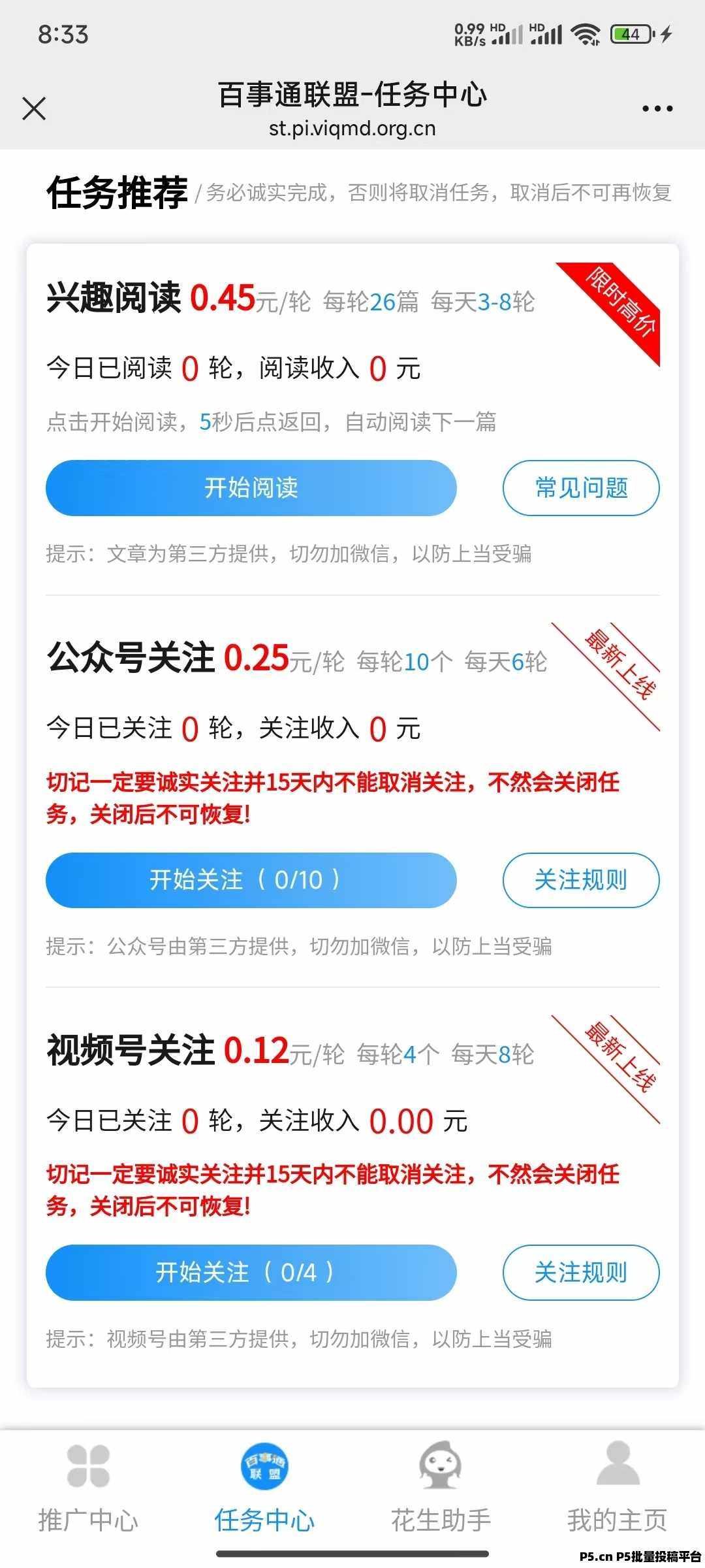 百事通任务联盟采用零撸模式,用户无需任何投资或费用即可参与。平台提供多种任务选择,用户可以根据自身情况灵活选择,轻松赚取收益。