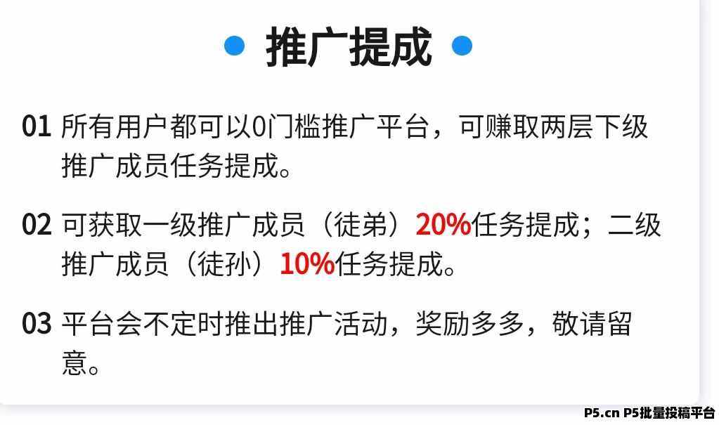 一级推广成员(徒弟): 可获得20%的任务提成。