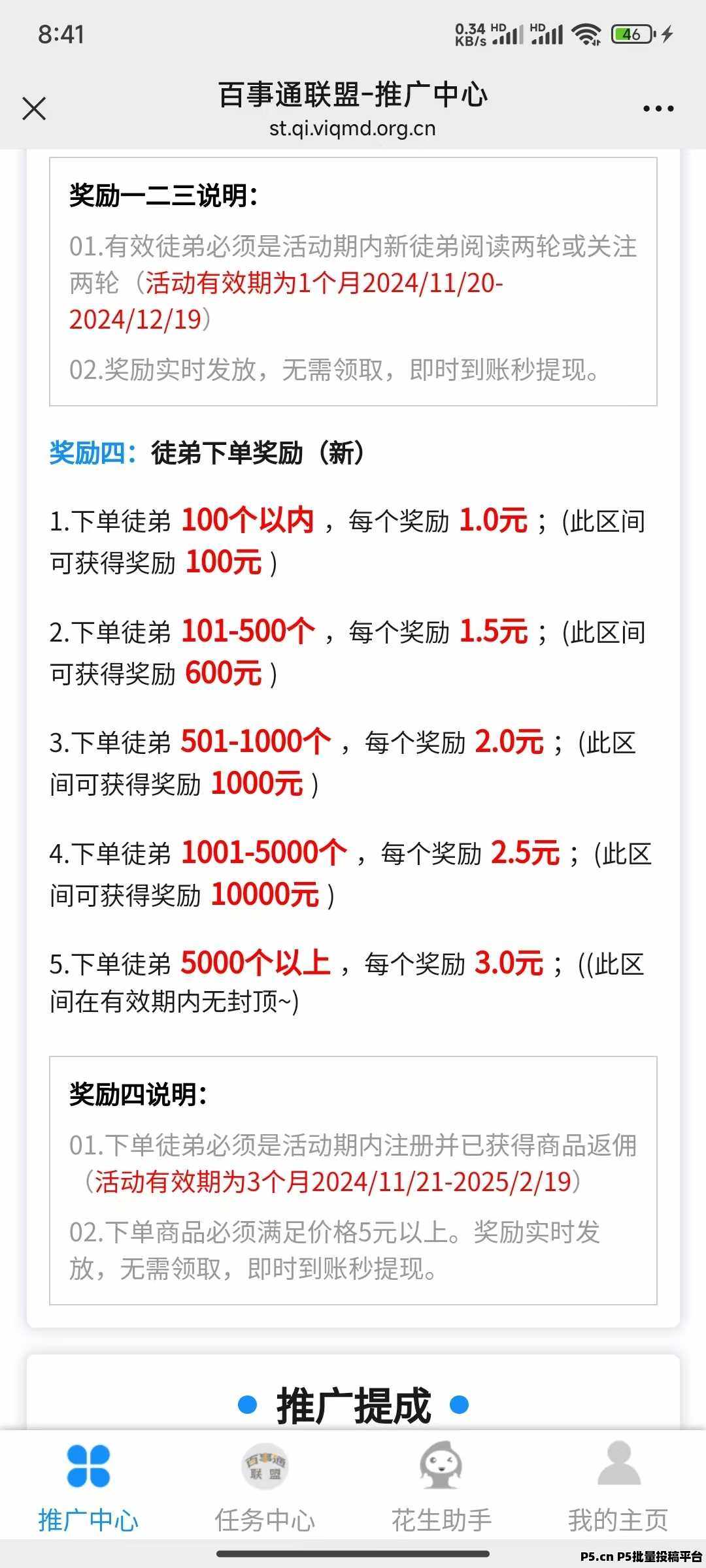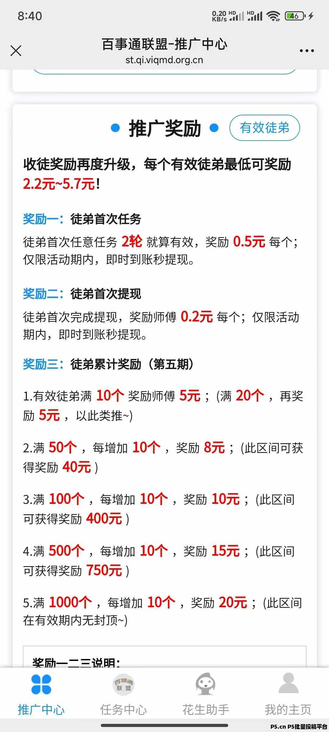 百事通任务联盟提供了丰厚的推广奖励机制,用户可以通过邀请好友加入,轻松获得推广奖励: