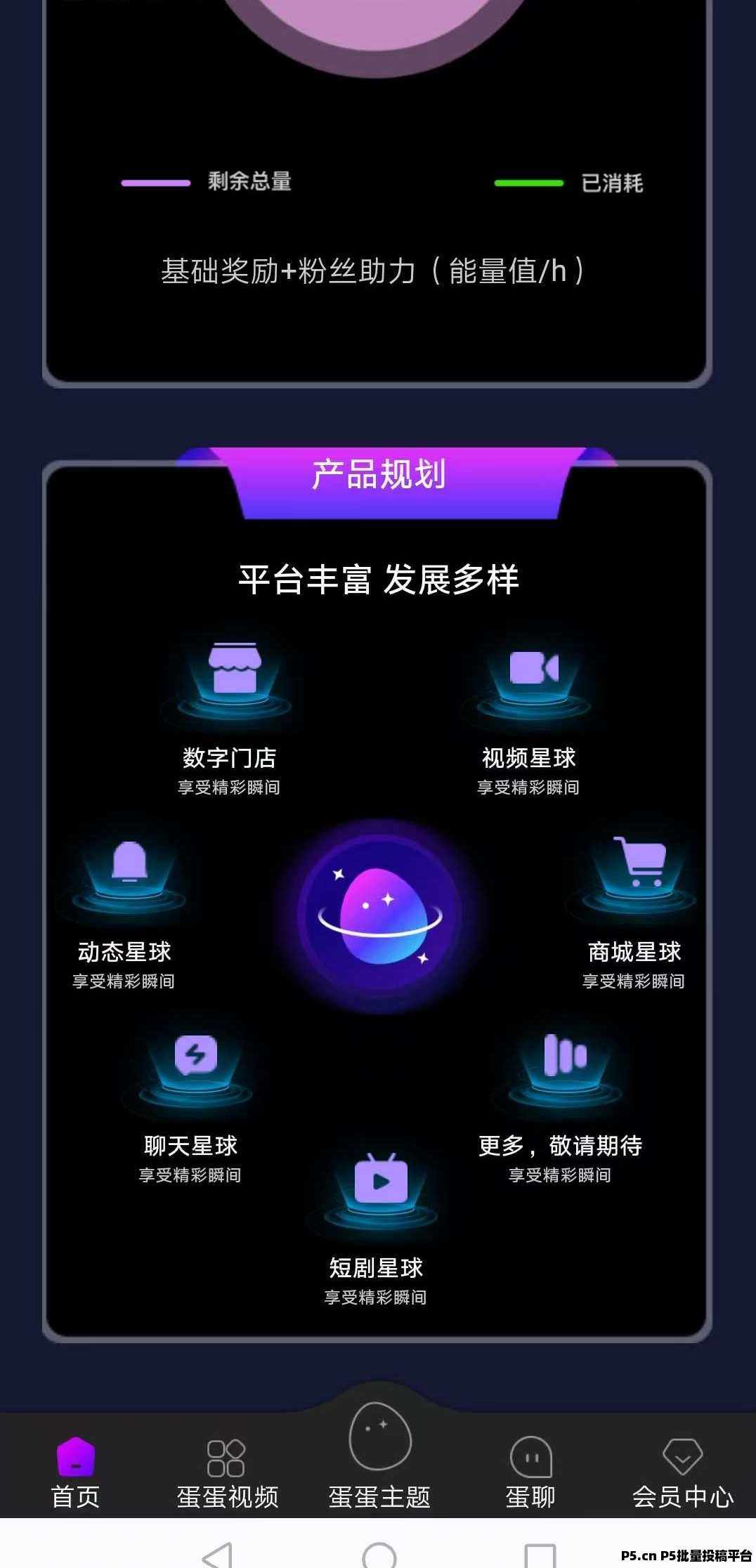 蛋蛋星球,刚出一秒,一个圏圏模式,24小时启动一次自动产能量,能量兑换余额直接提现。