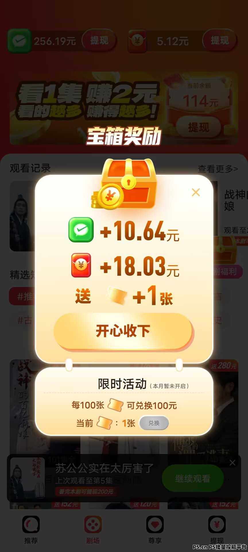 2.看短剧刷全集,右下角红包自动涨。加载满看广告,几毛不等,