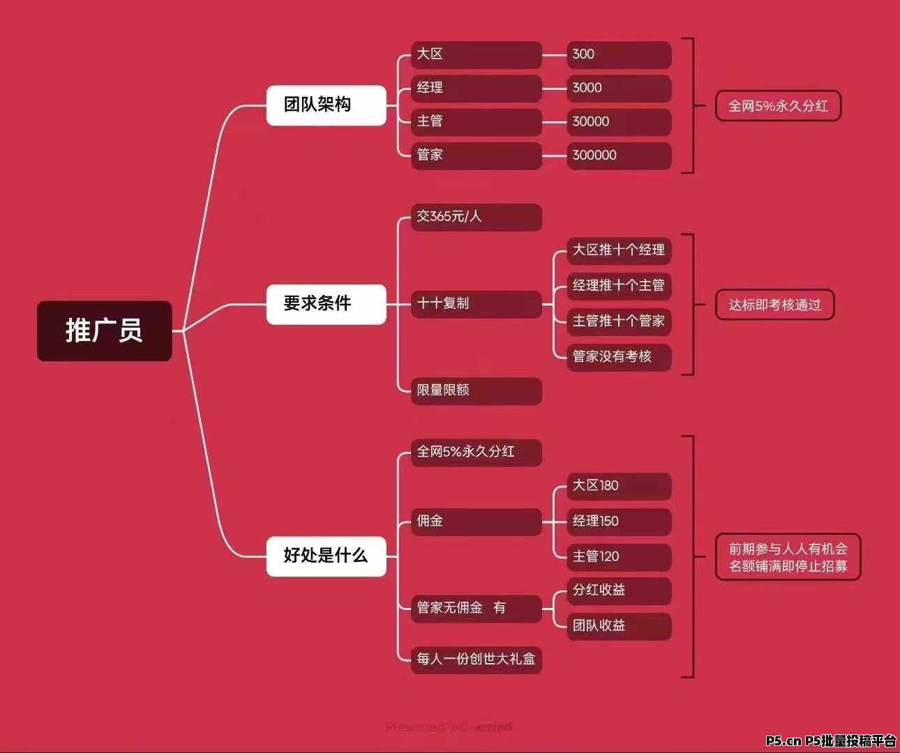 平台设有严格的人员招募计划,33万人招募完成后,平台将停止核心领导人的招募,只对普通免费用户开放推广机会。因此,现在是加入《通通》的蕞佳时机,错过这次机会,就再也无法享受平台带来的早期红利。