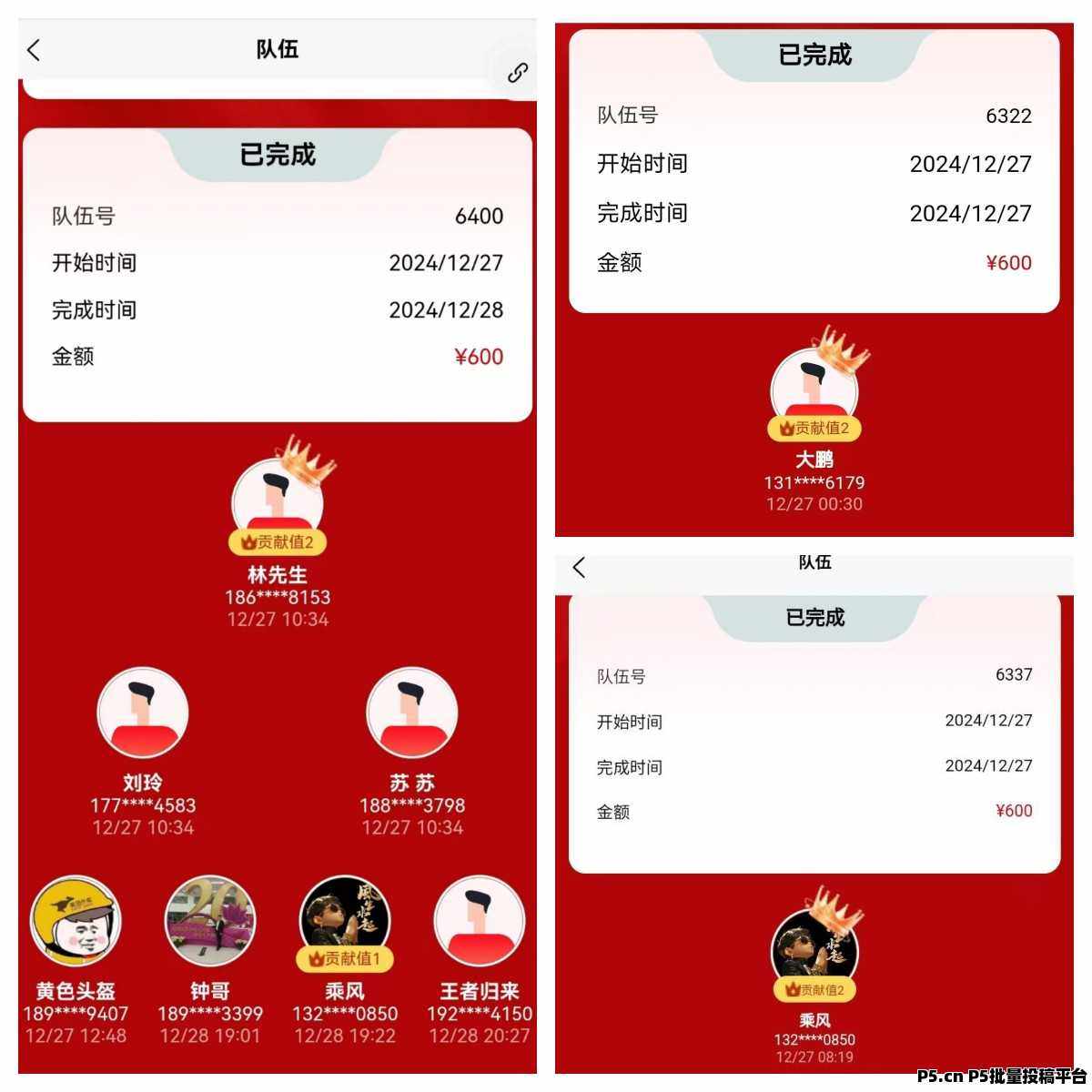 3、组队7人一桌,组队成功后,队长得600,还有600由系统自动复投循环,自动参与下一战队,并送600积分兑换产品。