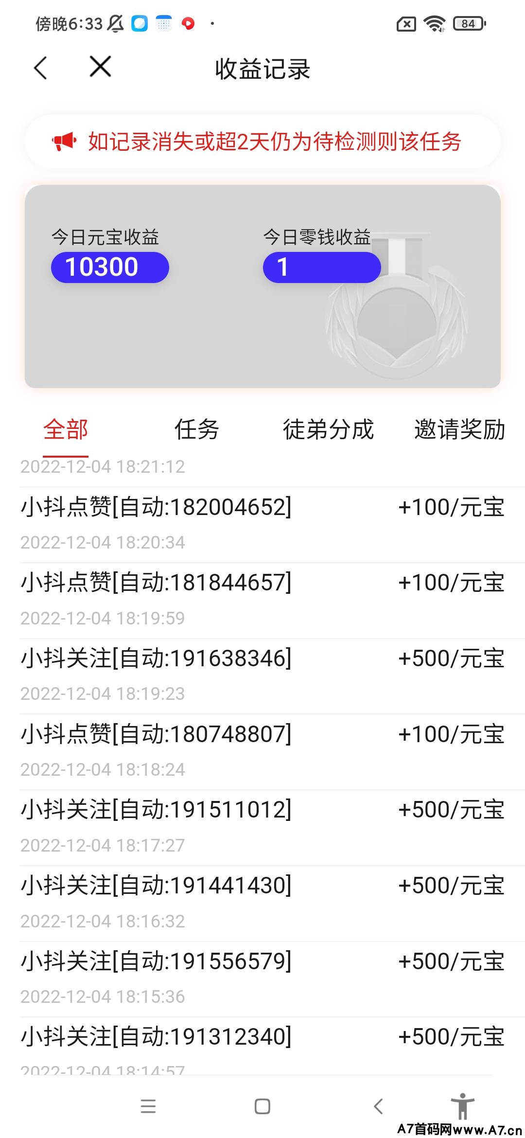 刚刚试了一下半个小时卦的一块,可想而知任务多的情况下,30还是有可能的,或者抖音小号多也是翻倍