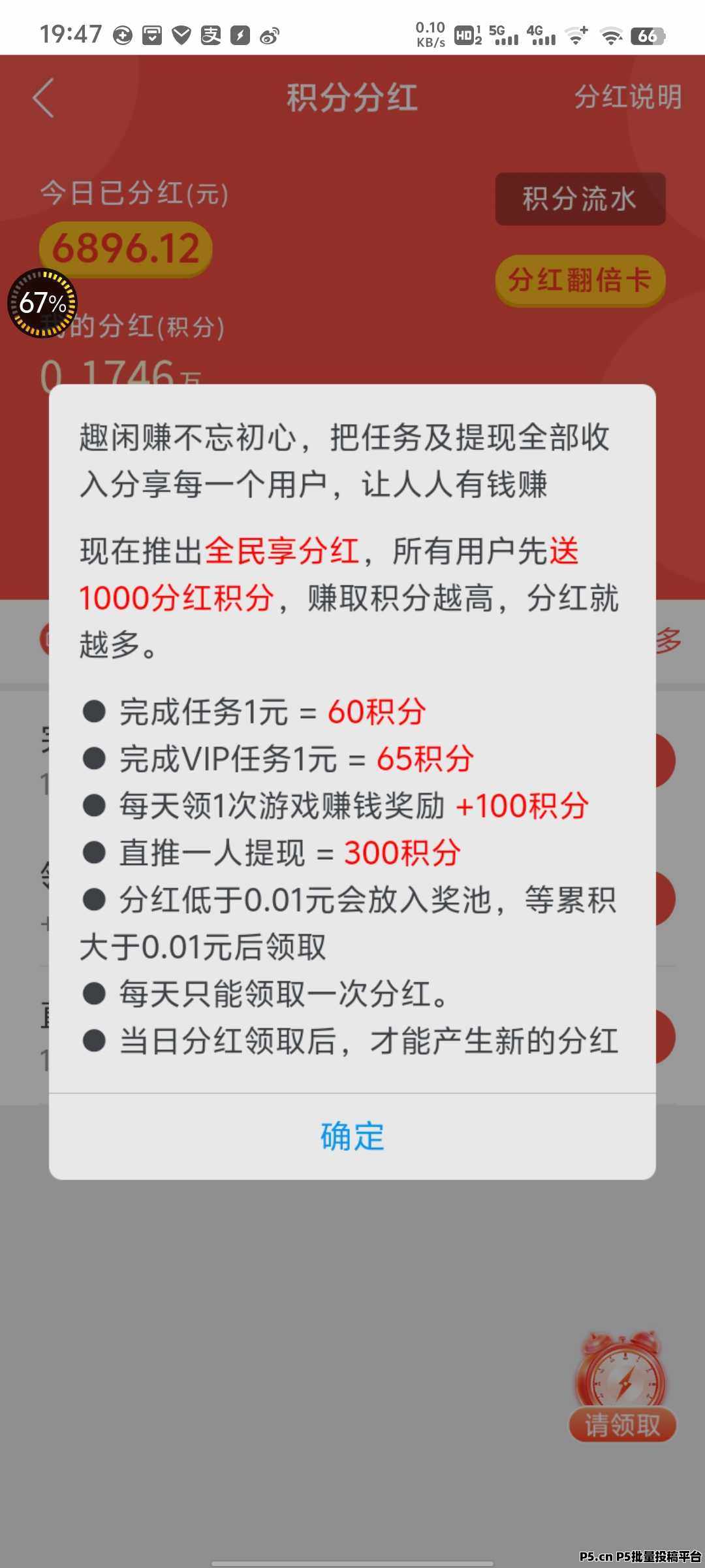 正文 趣闲赚首码,做任务赚积分享** zhuzi123000612 V作者 /2025-01-30 23:16:47/640阅读 0130 趣闲赚首码,做任务赚积分享**每天做做任务赚积分1r得60积分除了做任务每天还有额外平台高额任务还有试玩游戏每天奖励100积分邀请一个有效好友交流300积分活动期间邀请三个有效用户可以申请合伙人