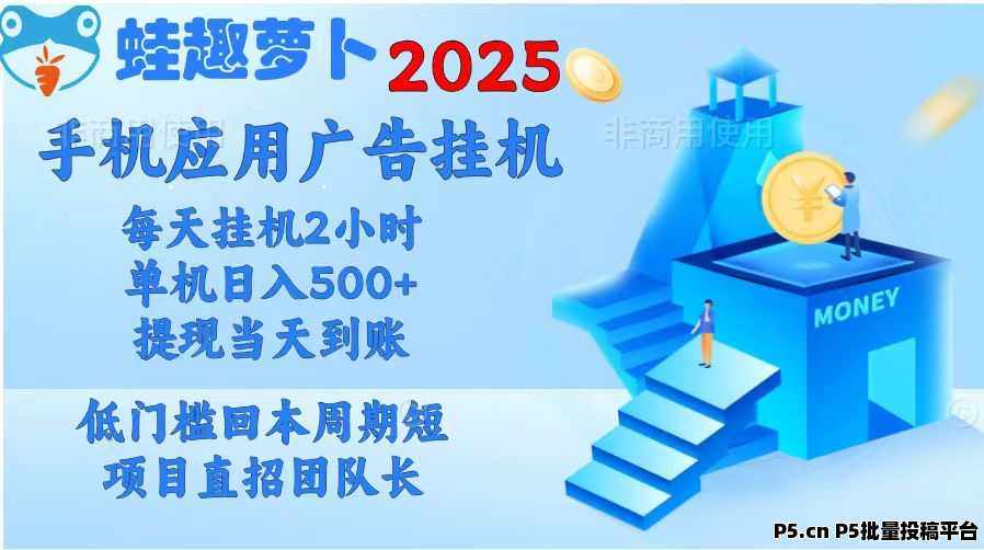 蛙趣萝卜全自动手机浏览广告APP项目是一个旨在利用用户空闲时间和手机资源,通过自动浏览广告来为用户创造收益的项目。用户只需简单设置,APP即可在手机的空闲时间自动运行广告浏览任务,无需人工干预。该项目利用大数据技术,通过检测用户的操作环境(如设备类型、操作系统、网络状况等)和广告商投送广告的类型、筛选出用户需要的相应广告数据,从而实现广告的精准推送。