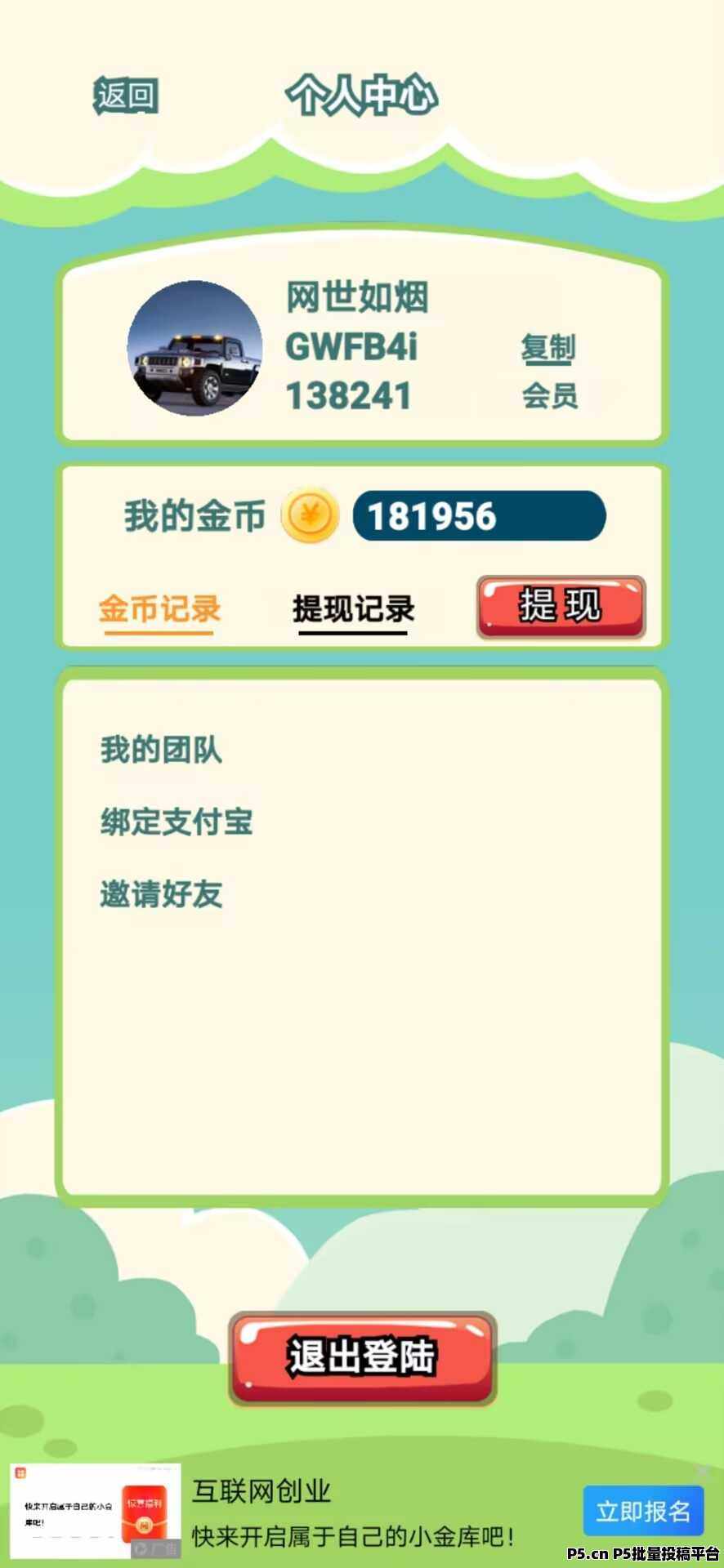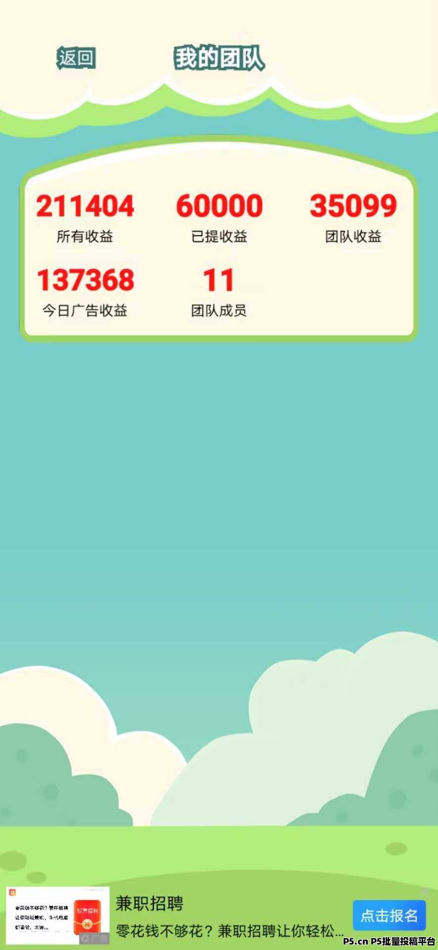 3.上班族,想找一个副业增加一定收入,或者想找一个长期可发展的项目。目前广告掘金还是,蓝海项目红利期,只要有人发广告你就一直能赚钱,很多人都玩过看广告的小游戏,但很少有人知道他还可以赚。抓住机会,敢于做第一个吃螃蟹的人,推广裂变变产生的收益没有上限。