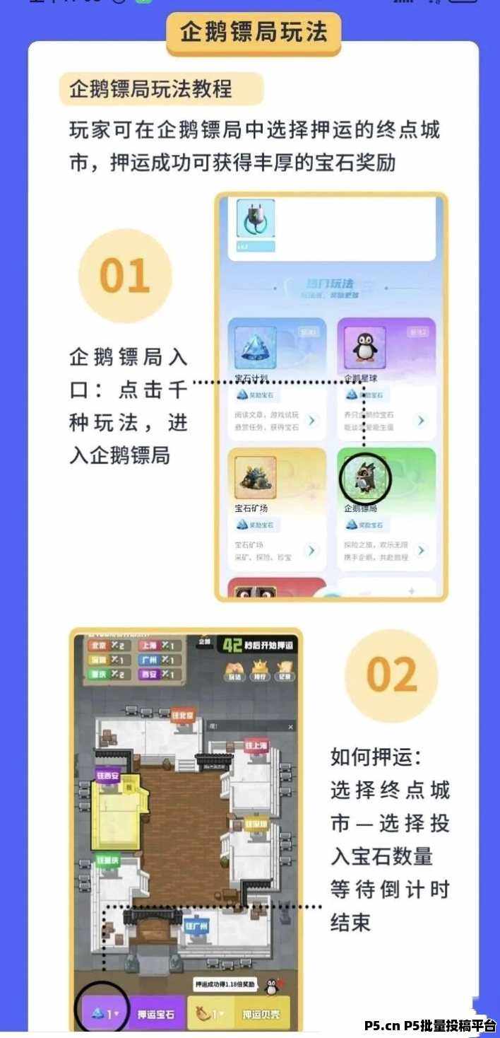 四、高倍爽感:点石成金小游戏5.7倍暴击、企鹅镖局跨国押镖,欧皇一天狂揽999+宝石。