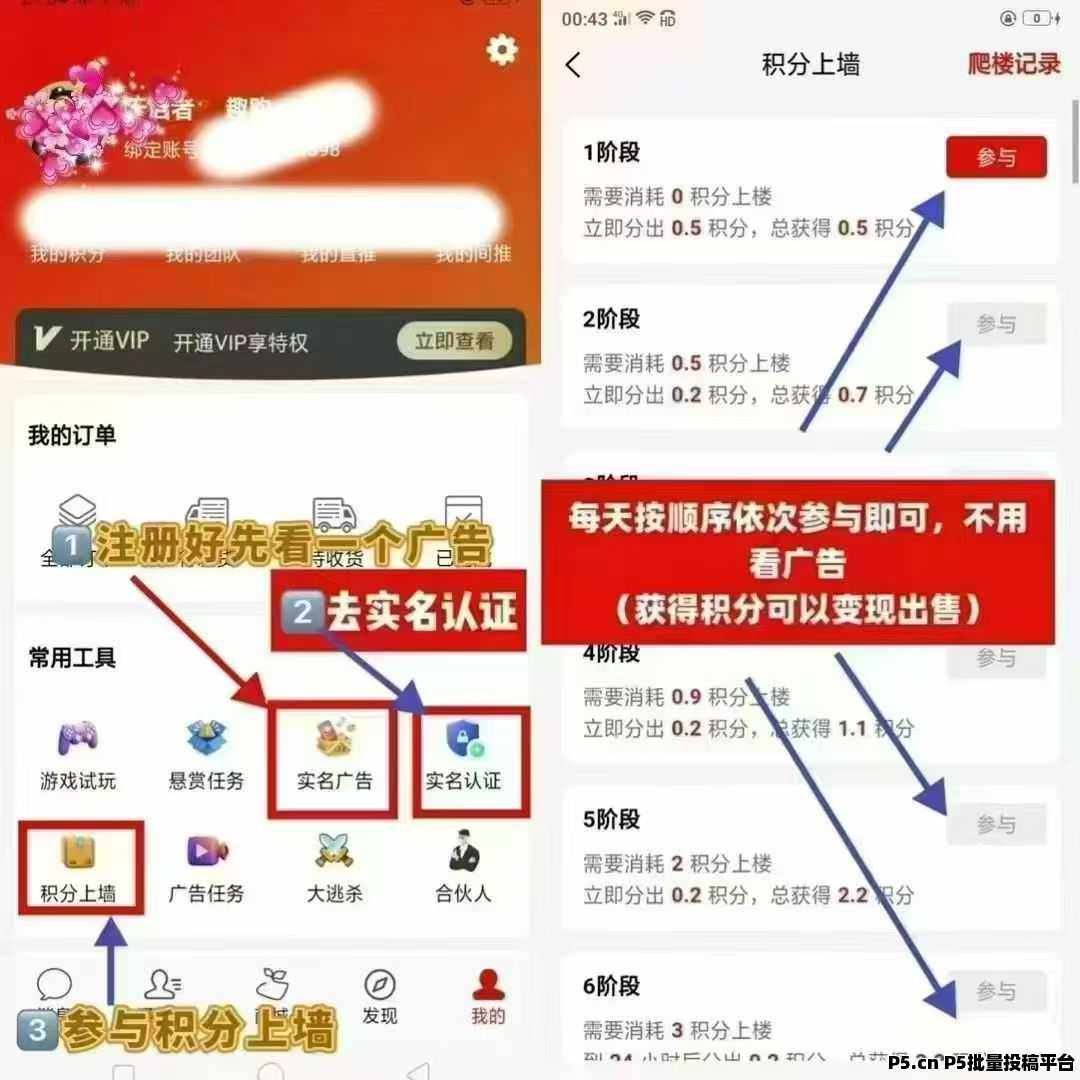 登录后然后去实名,简单做一个任务去实名就搞得,后面不用再做任务上墙了,每天直接爬墙就行,全名模式