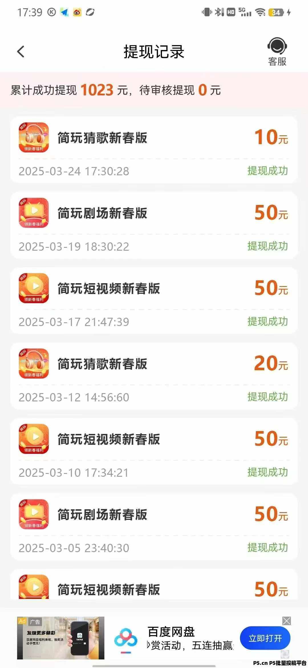 正文 简玩纯零撸优质广告盘,稳定项目 C102030000102 V作者 /2025-04-02 10:39:59/1.51 K阅读 0402 简玩纯零撸优质广告盘一轮6个广告一轮0.5~4米目前大放水中非常给力此项目已稳定运营一年多了
