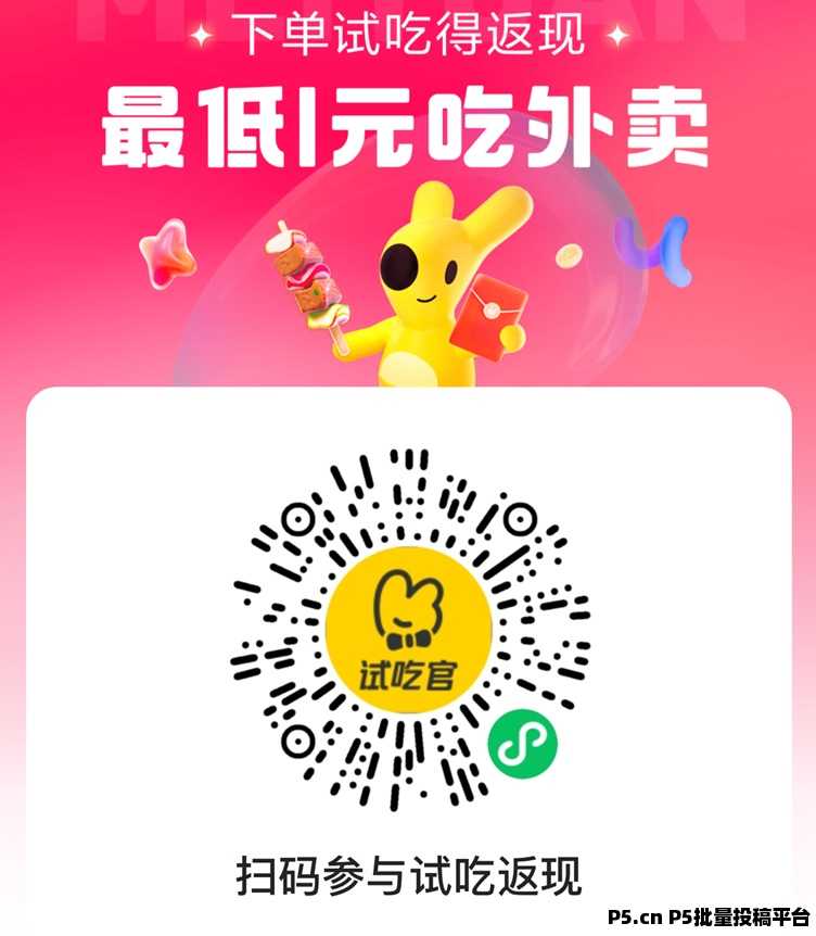 美团试吃官使用方法:扫描下方二维码进入美团试吃官