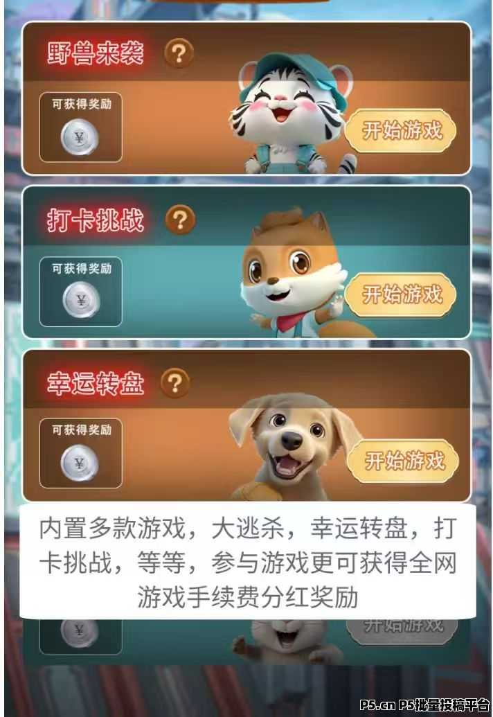 5:大逃杀,幸运转盘,签到挑战,幸运夺宝,多款游戏逐步开放。