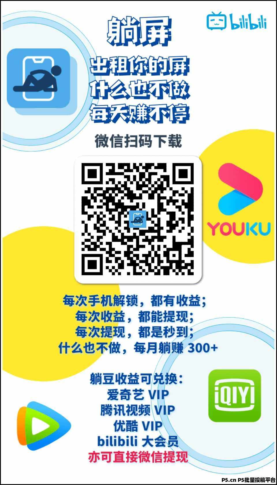 锁屏视频一天100次,一次5左右,100*5=500躺豆