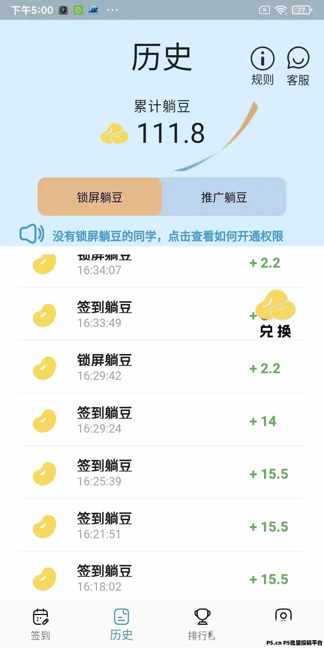 主要收益在签到栏里面的签到得躺豆,每天把这20次完成了就差不多了